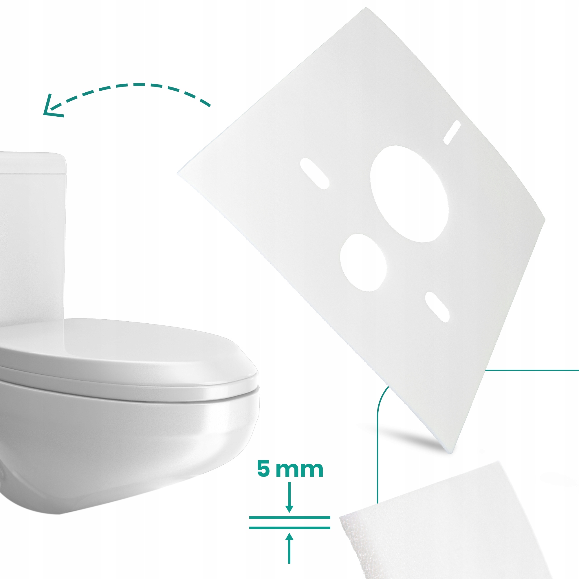 Потурбуйтеся про спокій і комфорт у вашій ванній кімнаті! Звукоізоляційний килимок ефективно усуває шум зливної води, забезпечуючи тишу під час користування туалетом. Завдяки міцній гнучкій піні килимок ідеально адаптується до поверхні, вирівнюючи її нерівності та забезпечуючи міцне кріплення унітазу.