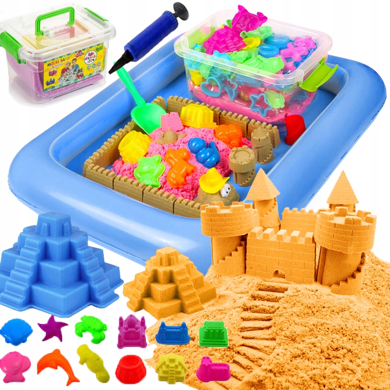 КІНЕТИЧНИЙ ПІСОК БАСЕЙН ФОРМИ ЛОПАТКА ПІСОЧНИЦЯ ВІДЖИМАННЯ НАБІР КОЛЬОРИ 2кг
