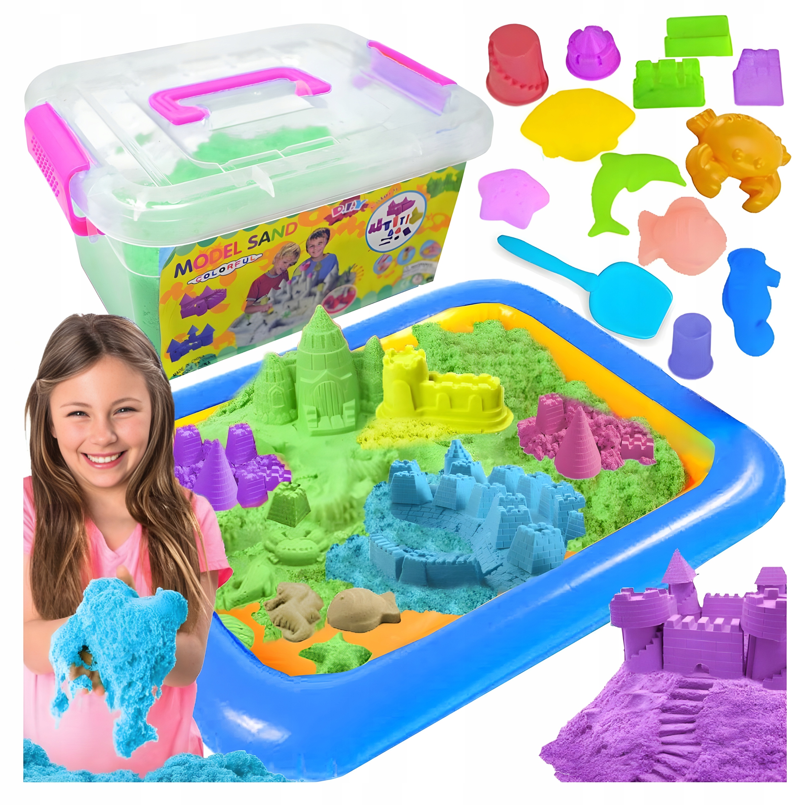 КІНЕТИЧНИЙ ПІСОК НАБІР 3 кг пісочниця басейн формочки чарівний кольоровий