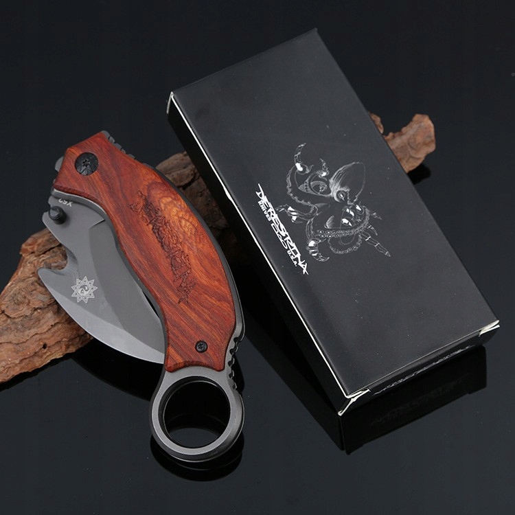 Чудова якість. Складний ніж, створений за зразком індонезійських ножів з карамбіту, які використовуються для самозахисту.
