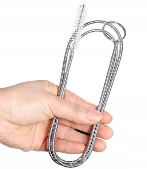 Гнучка, довга щітка для очищення відтоків. Ідеально підходить для видалення осадів, волосся та бруду з труб, сифонів та стоків холодильників, мийок, ванн та душових. М’які, нейлонові щетини ідеально збирають домішки і не витягують очищену поверхню. Гнучкий дизайн добре адаптується до форми очищених отворів та кабелів.
