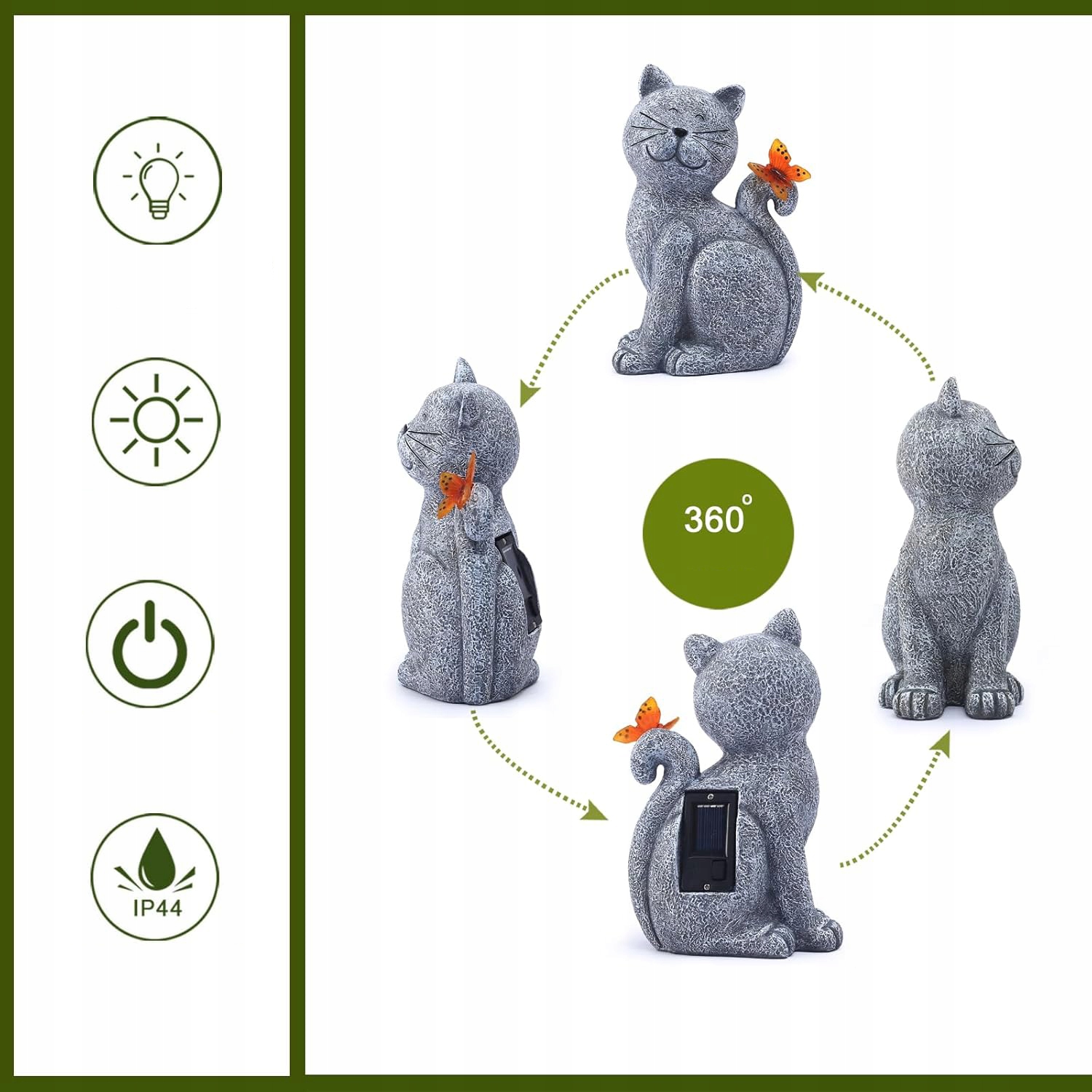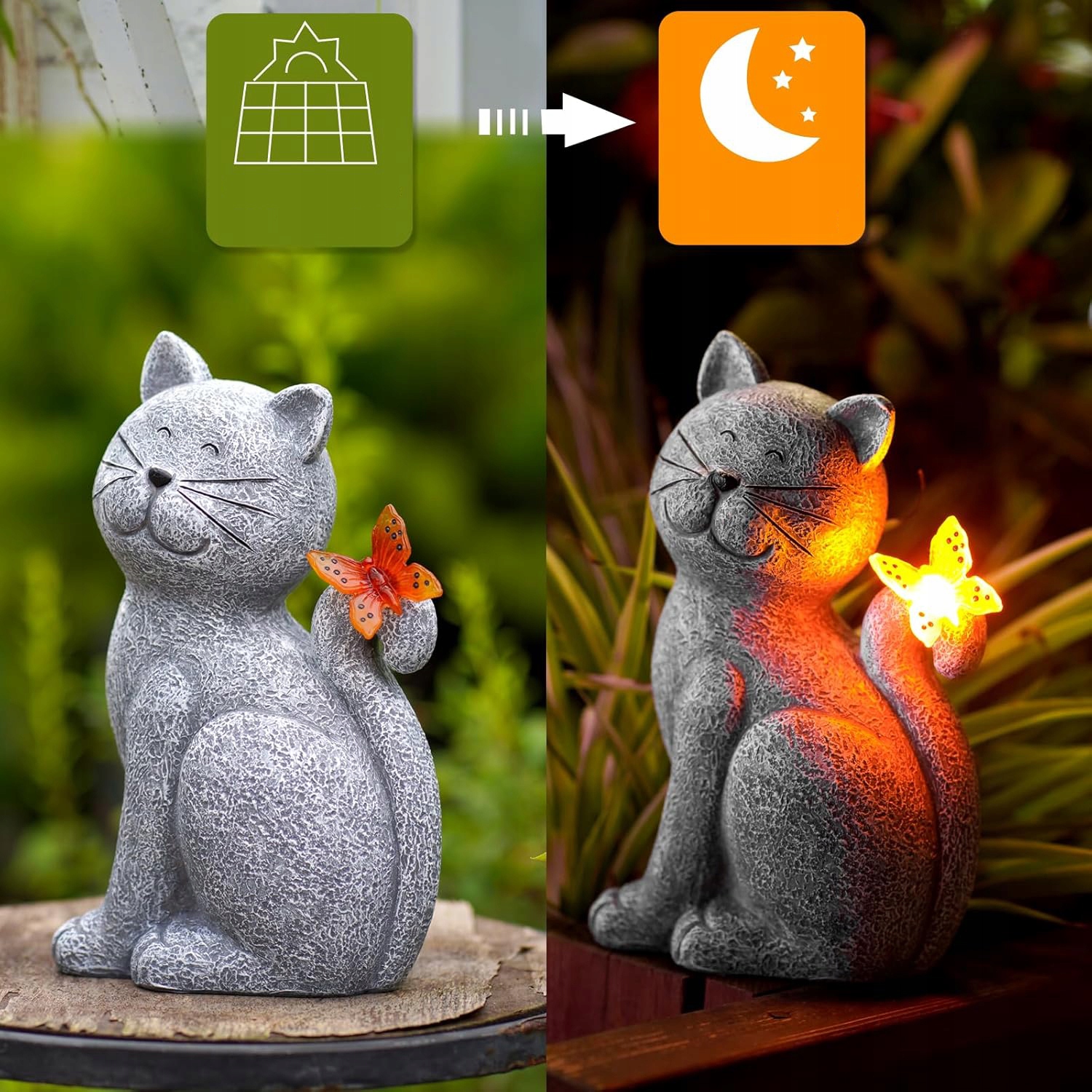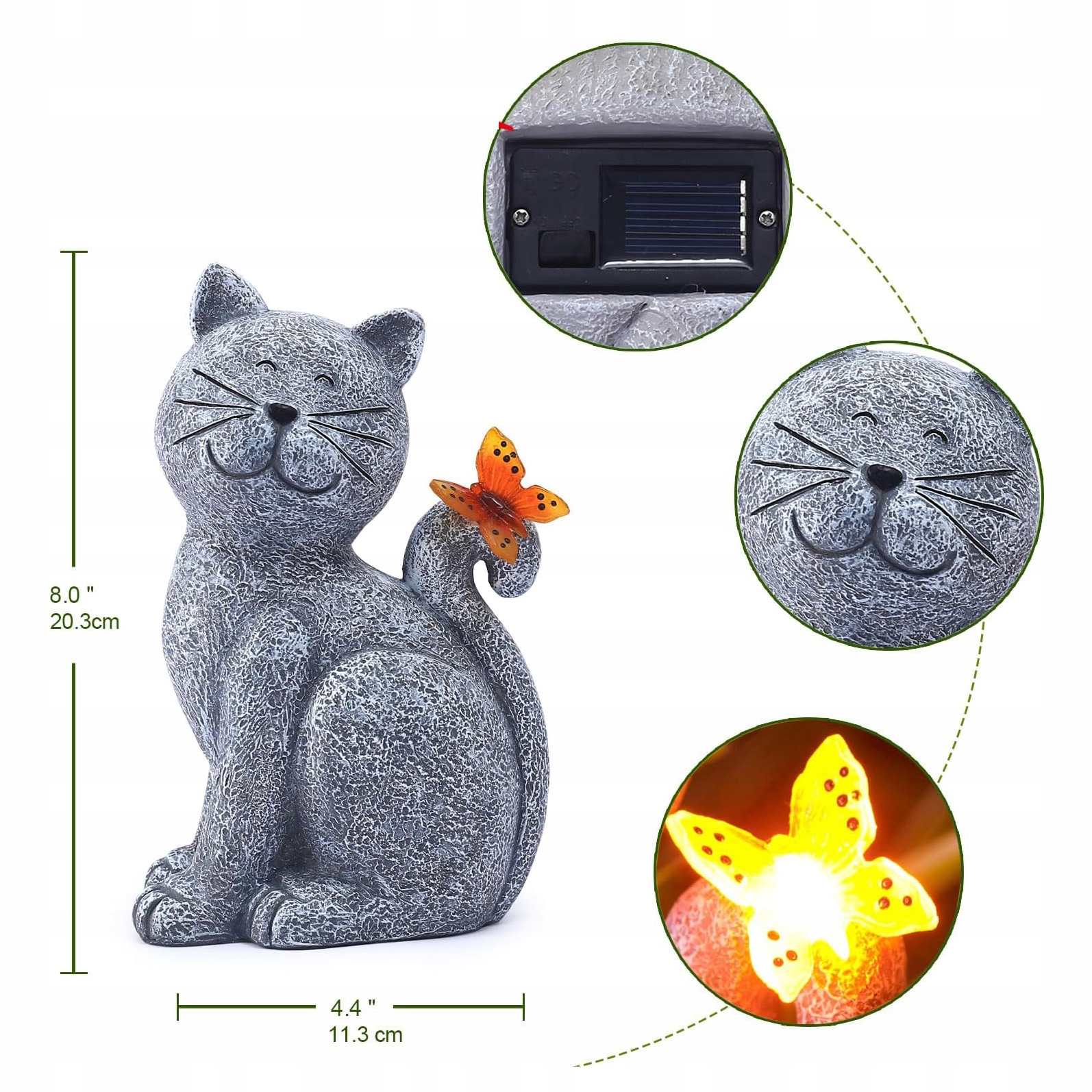 🏡 статуетка кішка з сонячною лампою метелика, унікальним подарунком, прикрасою для саду, газоном, терасою, ганком або двором irste ·