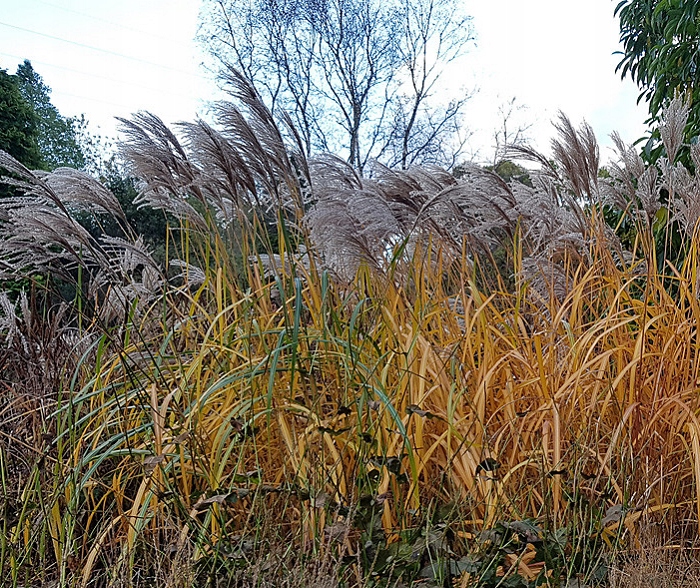 Китайський Малепарс Miscanthus -це висока і швидкозростаюча декоративна трава, утворюючи компактні скупчення висотою 160 см, і з суцвіттями до 220 см. Довгі листя, звужуючи, злегка зігнуті, зелені протягом більшої частини року, восени вони перетворюються на прекрасний помаранчевий колір, який потім переходить у червоний колір і взимку в солому. Суцвіття з’являється у серпні та вересні - вони великі, у формі шлейфів, у Бургундії, після пухнастого та срібного, дуже декоративного.