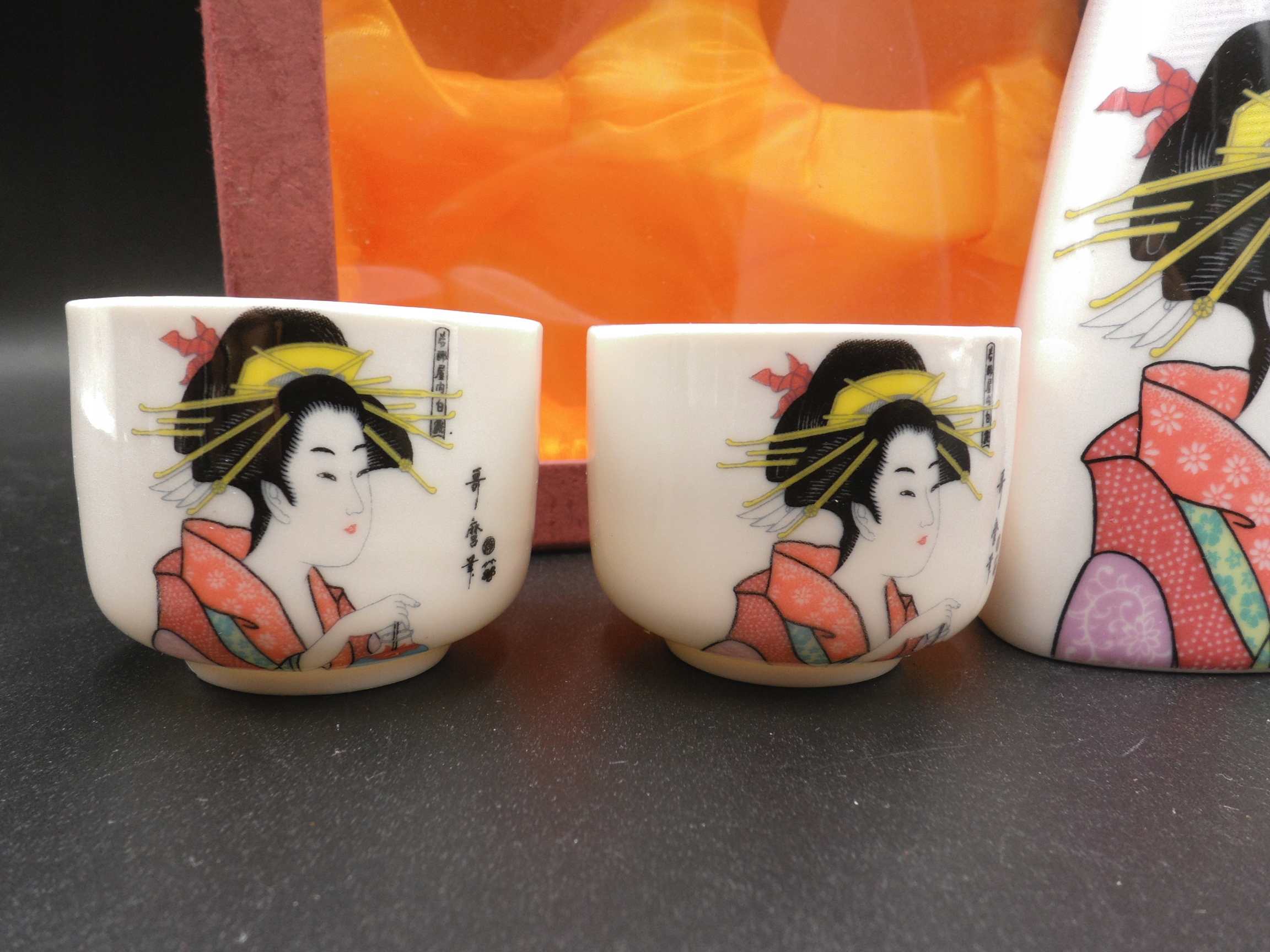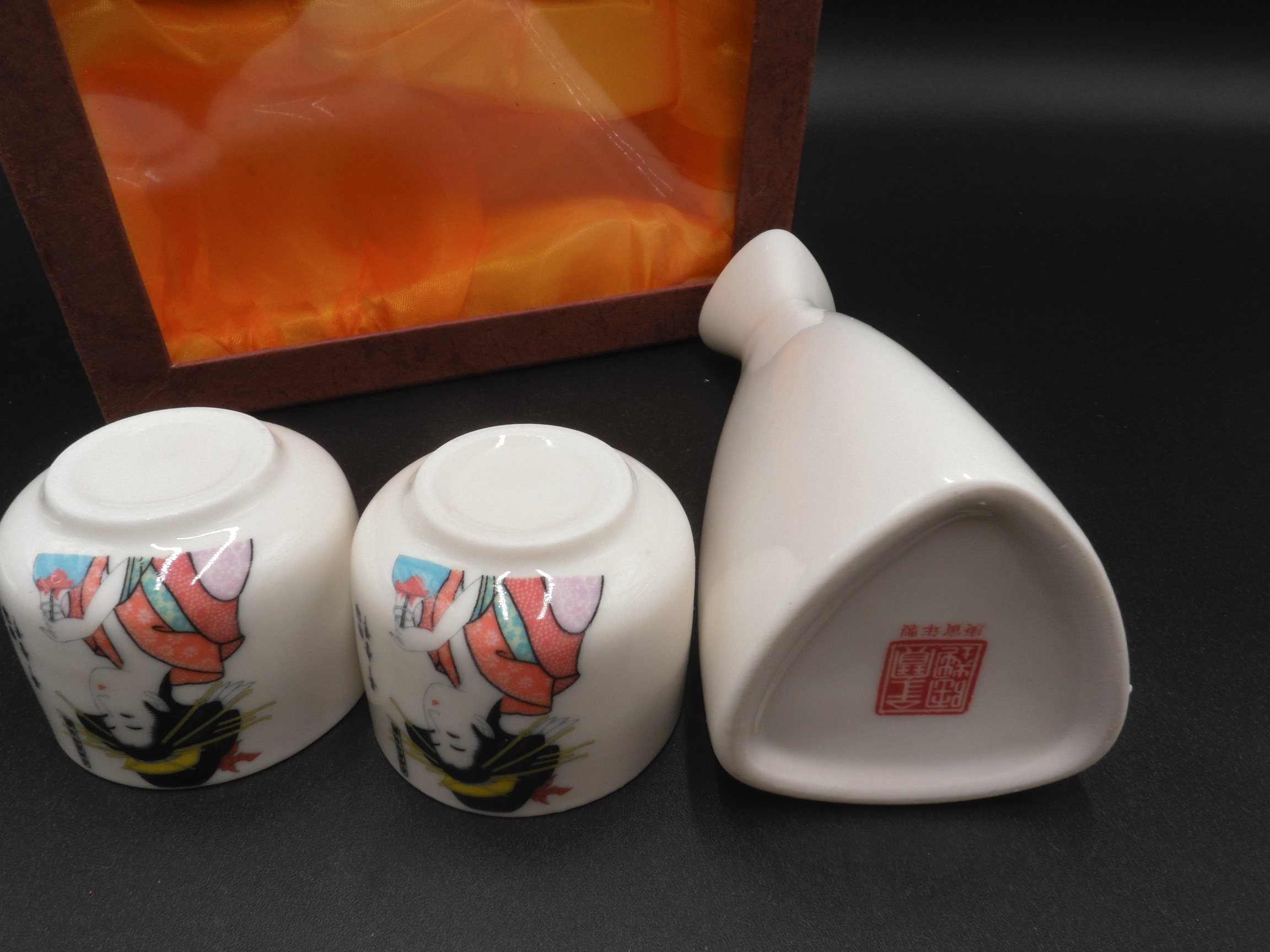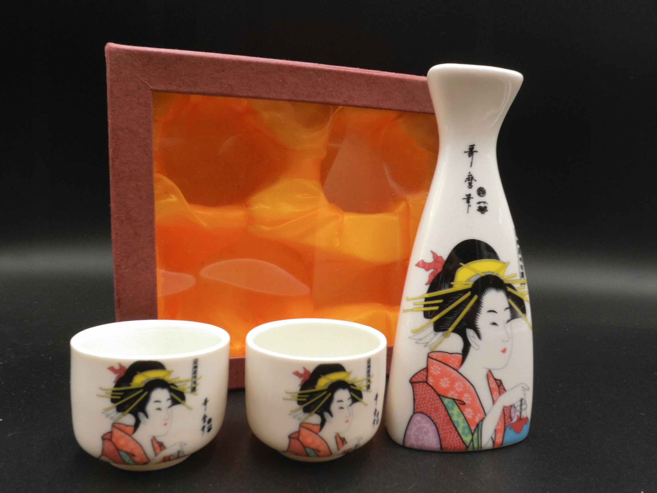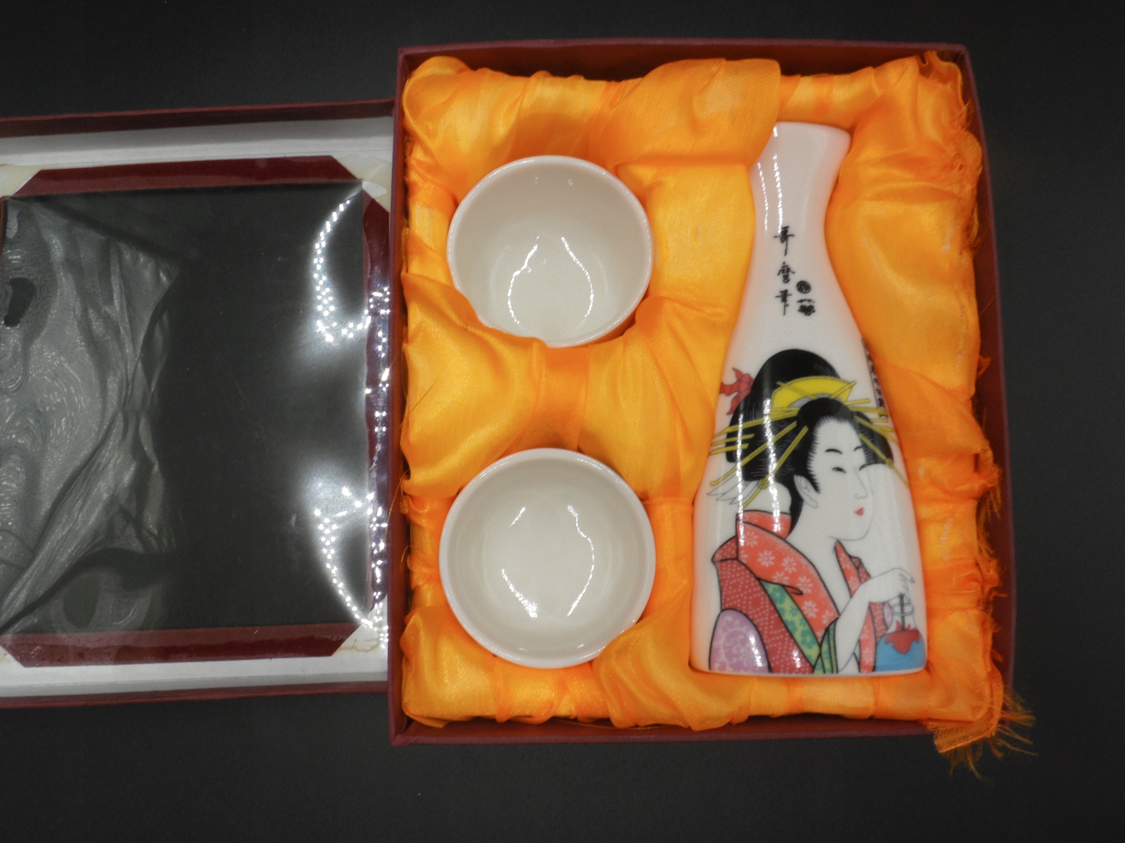 Китайський саке з мотивом гейші 2 чашки та пляшкою