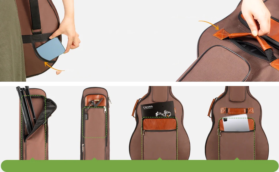 🎻4 Зовнішні кишені: Є 4 кишені для зберігання нотаток, струн, тюнерів, кубів та інших аксесуарів.