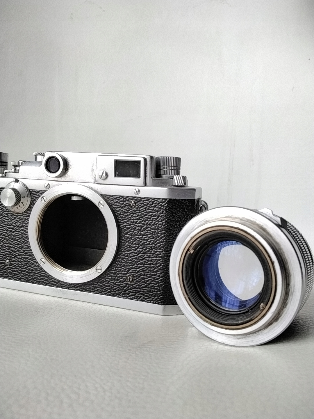aparat z obiektywem standartowym kanon об'єктив 1,8/50 мм, mocowanie gwintowe m39 typowe dla aparatu gwintowego leica.