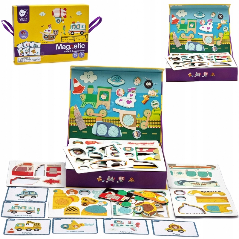 елементи для закладення транспортних засобів на магнітній дошці . Упорядковуючи транспортні засоби, ви можете слідкувати за карткою або створити власну версію, власні вітрила, гвинт та колеса. Цей набір дає багато можливостей та велику забаву!