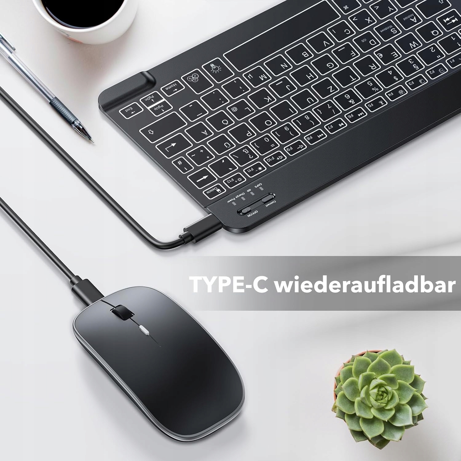 - побудований -в акумуляторі: клавіатура Bluetooth з можливістю зарядки з вбудованим -in літієвим акумулятором 400 мАг, , який може працювати протягом 40 годин / B> Не підсвічуючи фон або підсвічування після однієї зарядки, він працює більше 3 місяців у режимі очікування, завдяки якому ви забудете про проблеми із заміною акумулятора Bluetooth та миші. (Вам не потрібно купувати додатковий акумулятор, і вони оснащені USB -кабелем)