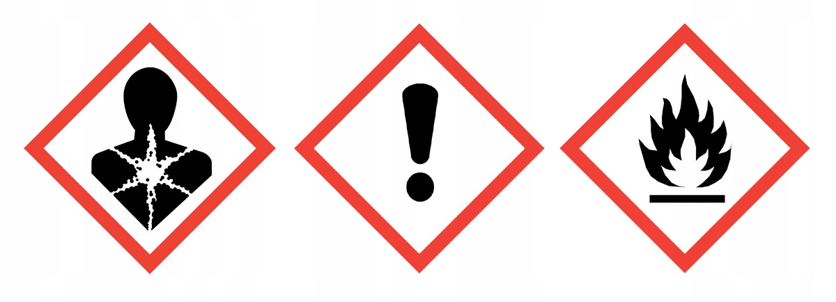 БУДЬТЕ ОБЕРЕЖНИМИ: Шкідливий вплив на здоров'я людини. Продукт викликає подразнення та шкідливий для здоров'я. Це подразнює шкіру. Може викликати сенсибілізацію при контакті зі шкірою. Шкідливий при вдиханні; становить серйозний ризик для здоров'я після тривалого впливу. Можливий ризик порушення фертильності. Пари можуть викликати відчуття сонливості та запаморочення. Шкідливий вплив на навколишнє середовище Токсичний для водних організмів; може спричинити довгострокові несприятливі зміни у водному середовищі. Шкідливі ефекти, пов'язані з фізико-хімічними властивостями. Сильно горюча рідина. Пари утворюють з повітрям вибухові суміші. Пари важчі за повітря і накопичуються на рівні землі та в нижніх частинах приміщень. Займання продукту та його парів можливе від відкритого вогню та іскри, від гарячої поверхні.