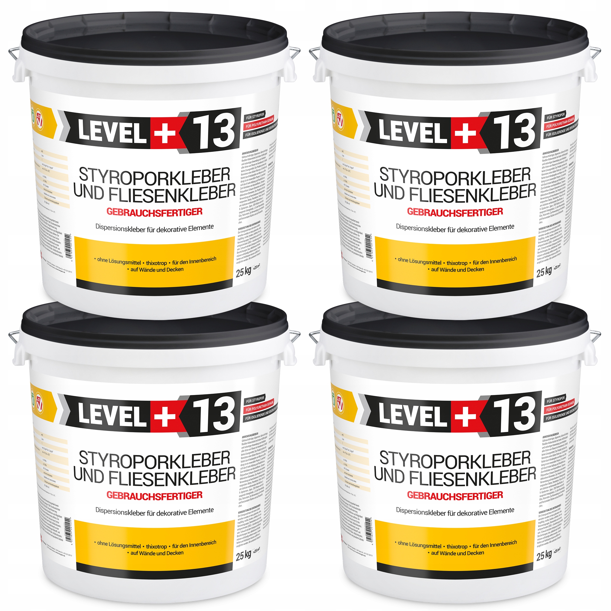 Дисперсійний клей STYROPORKLEBER L+13 використовується для приклеювання всіх видів стінових і стельових панелей, для пінополістирольних і поліуретанових кесонів, настінних і стельових планок, для декоративних профілів, для стельової плитки, панелей і розеток, для приклеювання пробки та інших декоративних елементи . Для безпечного з'єднання теплоізоляційних панелей з полістиролу і жорсткого пінопласту. Клей можна використовувати для склеювання декоративної штукатурки та цементної плитки. Продукт призначений для використання на різних типах основ: бетон, підлоги, газобетон, штукатурка, найбільш схильні до деформації поверхні, які зустрічаються в будівництві, наприклад, гіпсокартон, ДСП, OSB плити. Можна використовувати на вертикальних і горизонтальних поверхнях всередині приміщень. Продукт не має негативного впливу на природне середовище.