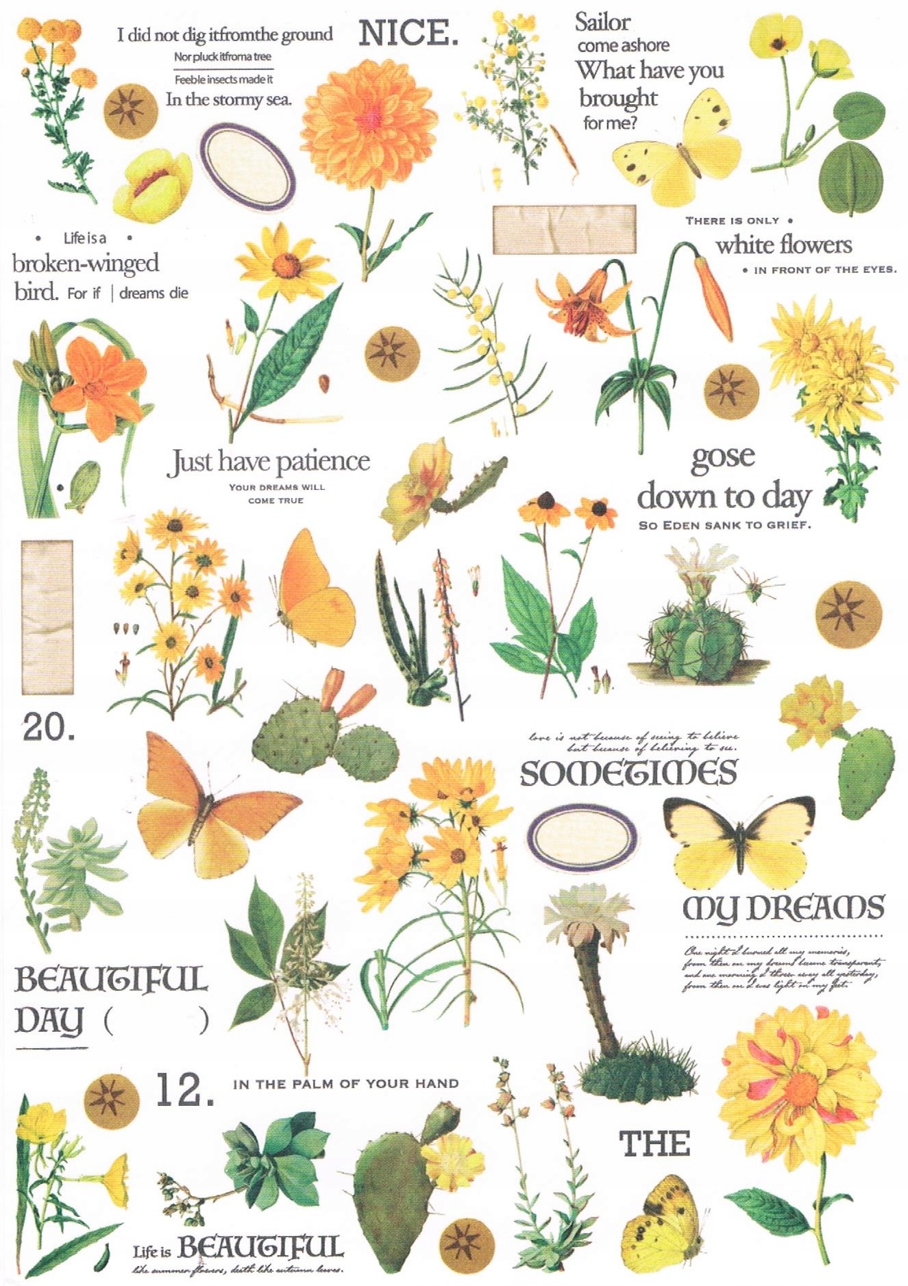 КЛЕЙКИЙ АРКУШ ДЛЯ СКРАПБУКІНГУ 24х17 СМ КВІТИ