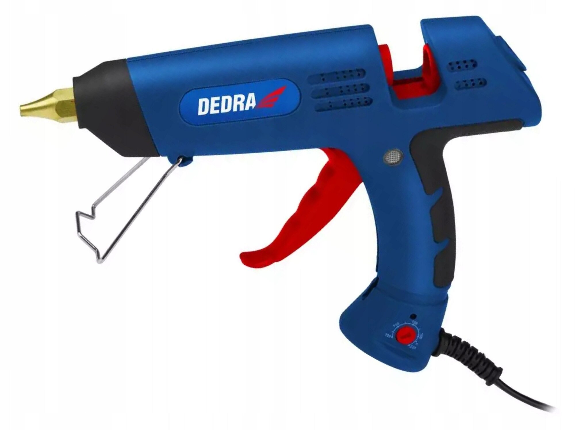 Використовуйте пістолет для гарячого клею, щоб з’єднати такі матеріали, як дерево, пластик, метал, шкіра чи гума. З’єднання елементів здійснюється за допомогою клейових вставок діаметром 11,2 мм. Пістолет характеризується легкою, міцною конструкцією, дуже зручний і зручний в роботі. Пістолет використовується як професіоналами, так і любителями саморобки та декоративних робіт. За швидкий нагрів пістолета відповідає вбудований керамічний нагрівач (ПТК) - через 2-3 хвилини пістолет готовий до роботи. Клейовий пістолет DEDRA DED7557 має стійку підставку з дроту, що дозволяє безпечно опускати пістолет під час роботи, а конструкція насадки запобігає витіканню клею після відпускання курка. Додатково прилад оснащений індикатором готовності та ручкою регулювання температури.