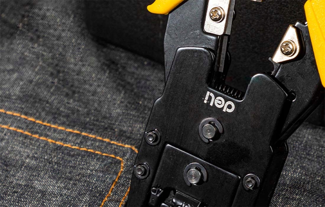 Щипці Deli yellow дозволяють безпечно обтискати штекери RJ45.