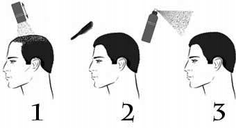 1. Вимийте, висушіть і укладіть волосся. Потім, тримаючи упаковку Kmax під кутом, рівномірно посипте ділянки, де видно рідше волосся. Немає необхідності посипати всю голову. (перед використанням струсіть контейнер - це стимулює електростатичність мікроволокон)