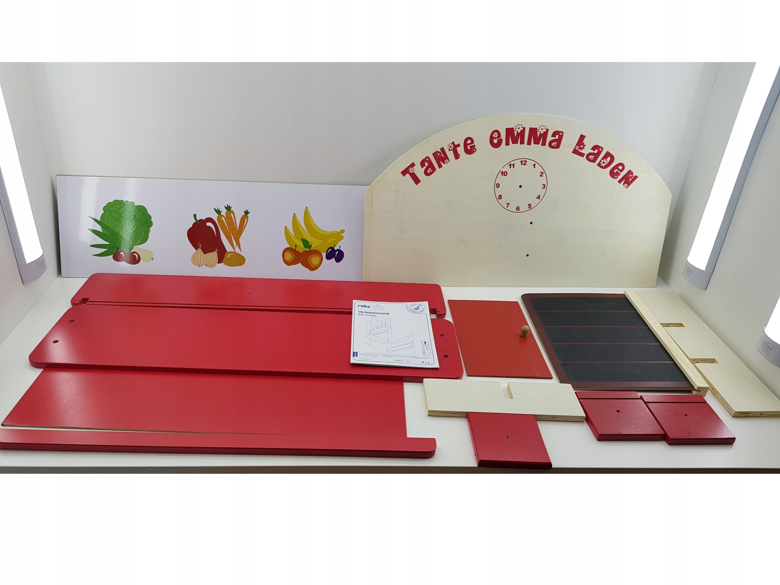 Умова: причини, незначні сліди зберігання у вигляді подряпин на елементах. Одна двері з шафи трохи розірвані. Магазин з друком з продуктовими мотивами вражає хорошими продуктивністю. Полиці, передня полиця та задня сторона забезпечують простір для різноманітного асортименту товарів та аксесуарів. Дошка для написання бічної роботи та музична скринька забезпечують додаткову забаву. Виготовлений відповідно до стандарту іграшок EN71-1: 2014. Усі матеріали перевіряються на шкідливі та сертифіковані речовини. Крім того, у магазині є якісний знак Інституту дерев’яних технологій EPH, поверхні, що можна промивати та прості в обслуговуванні. Розміри після складання підставки - 113 x 103 x 75 см.