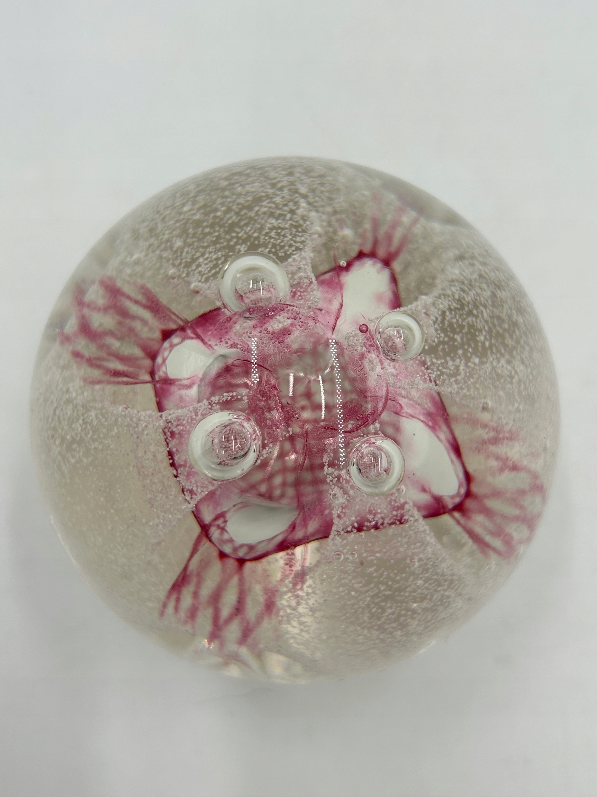 Тема продажу -це кнопка шотландського скла для caithness м’яча, укладена, з декоративним інтер’єром. Прекрасний декоративний предмет буде цікавим столом або прикрасою полиць.