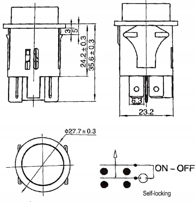 кнопковий автомобільний вимикач HIGH 4PIN 27,70 мм
