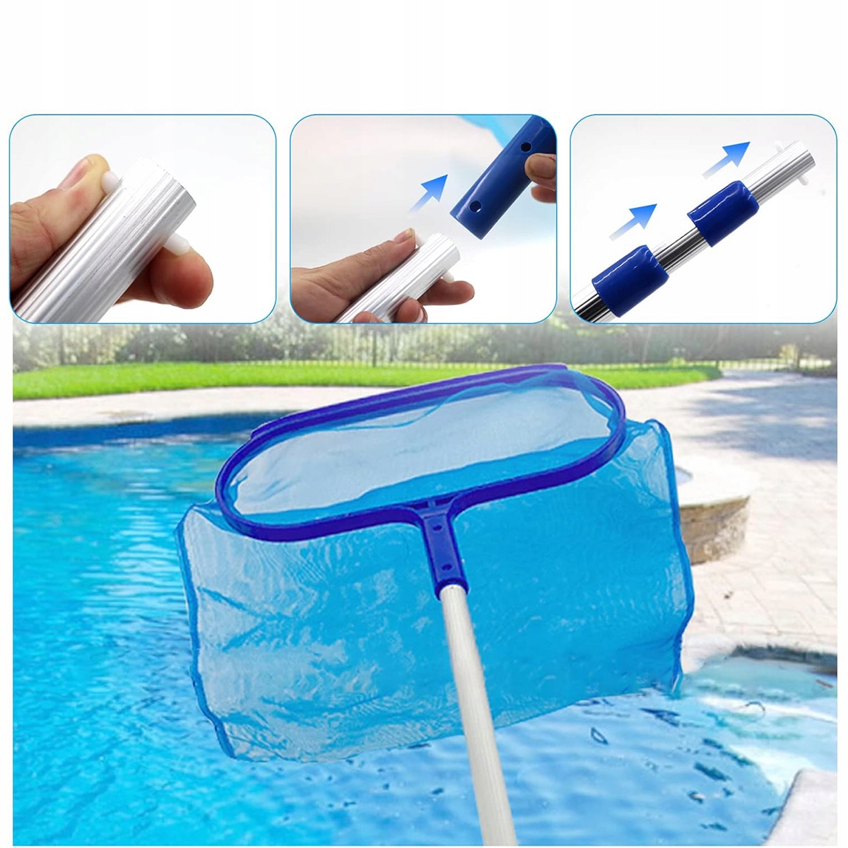 [ Сітка для листя басейну виготовлена з високоякісного матеріалу PP, з невеликими стібками та м'яким матеріалом. Листова сітка має телескопічну структуру, яка відключена, зручна для перенесення та проста у використанні.
