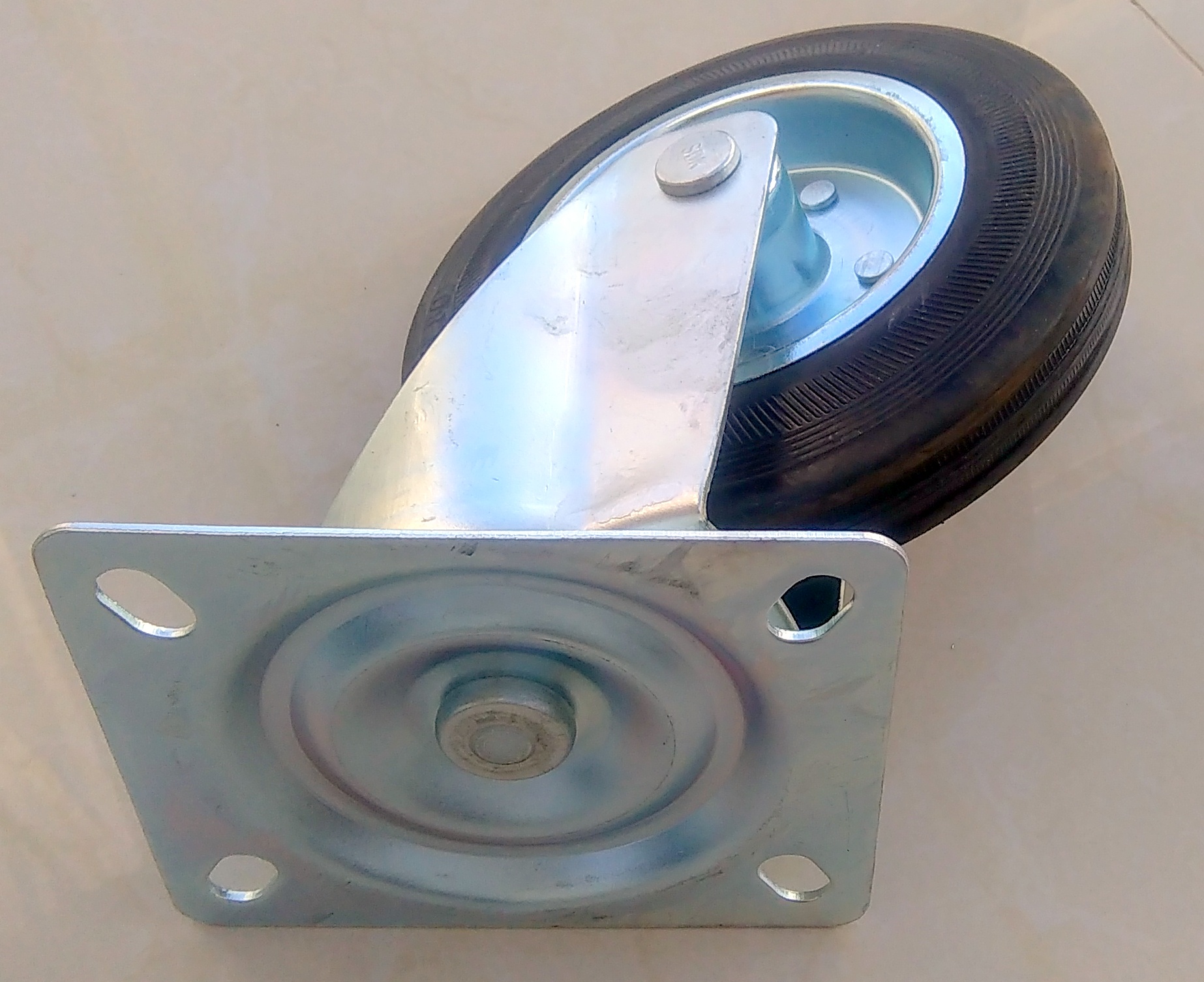 Колеса встановлені на т.зв Пластина являє собою комбінацію вилки з пресованого сталевого листа і колеса зі сталевою втулкою і шиною з суцільної чорної гуми. Поворотна головка вилки має подвійні підшипники і захищена від бруду спеціальним пиловим ущільнювачем. Всі металеві елементи комплекту покриті антикорозійним хромоцинковим покриттям.