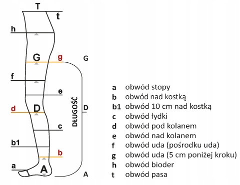 Вимірювання найкраще проводити вранці, відразу після вставання з ліжка, коли на ногах ще немає набряків. Окружності ніг тоді найменші. Розмір слід підбирати після вимірювання окружності ноги в обраних точках, зазначених у таблиці розмірів.