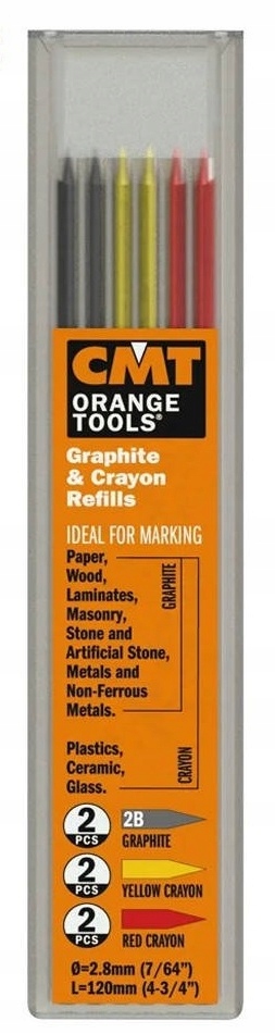 - Кольоровий графітовий вкладиш ідеально підходить для маркування на папері, дереві, ламінаті, цеглі, камені та кварці, металі та кольорових поверхнях.