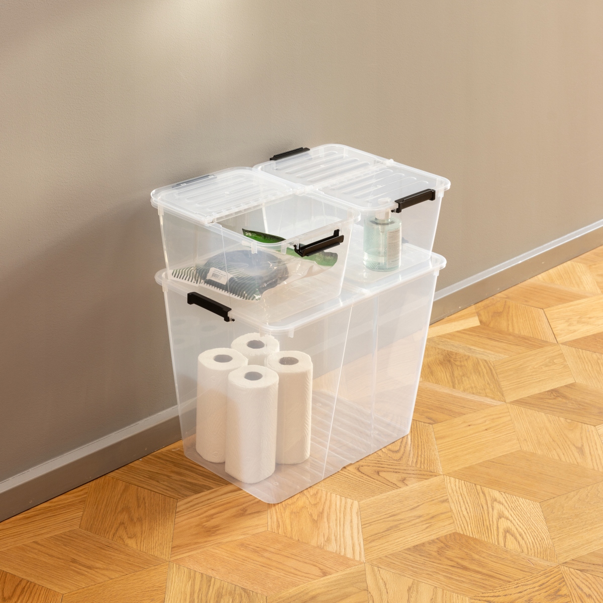 Мінімалістичний дизайн, натхненний датською естетикою, поєднує функціональність та елегантність , ідеально вписуючись у сучасні інтер'єри. Прозорі стіни полегшують швидке пошук вмісту, а можливість встановлення ящиків поверх іншого зберігає простір.