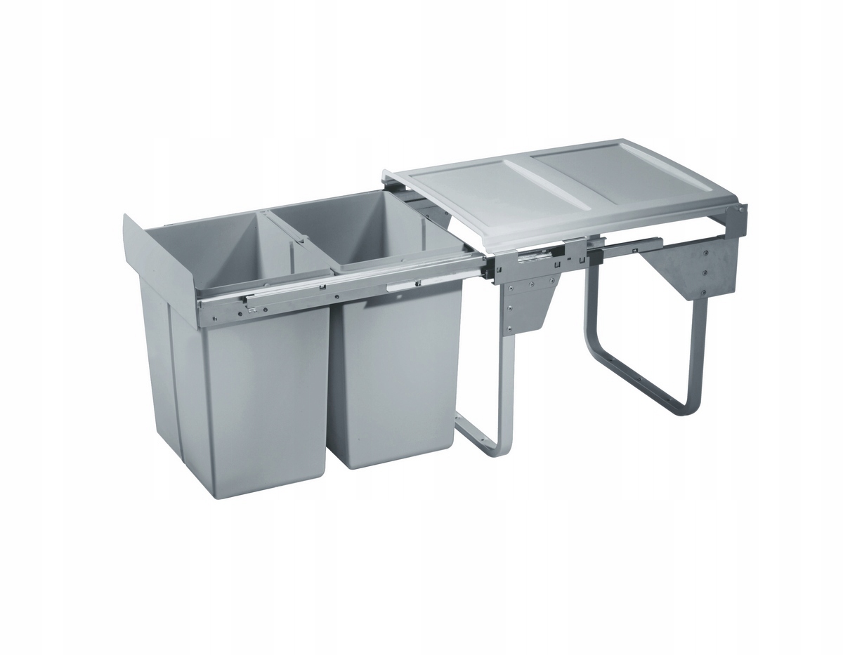 Вміст набору: 2x контейнер для сміття, пластикова кришка, сталева рама з напрямними.