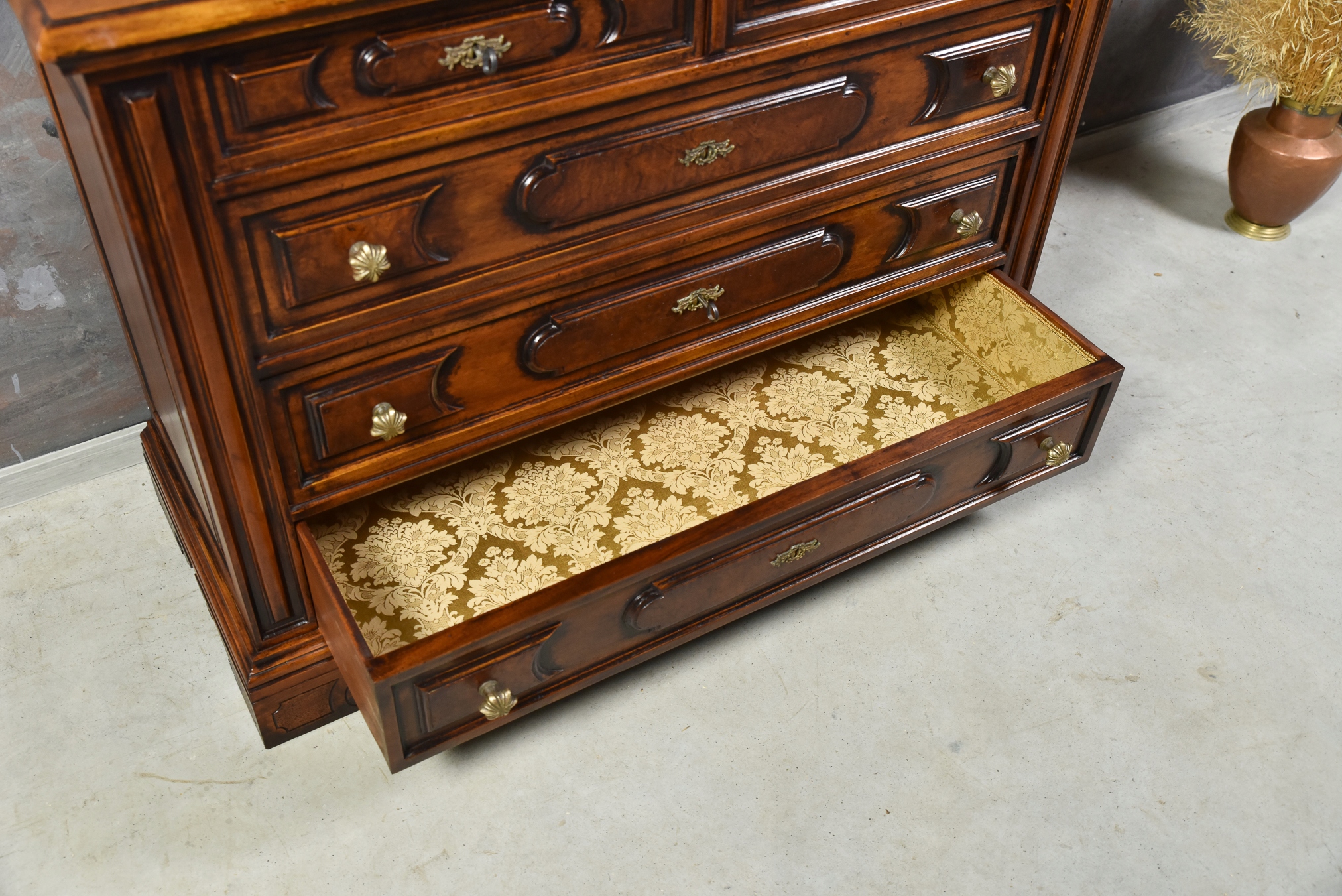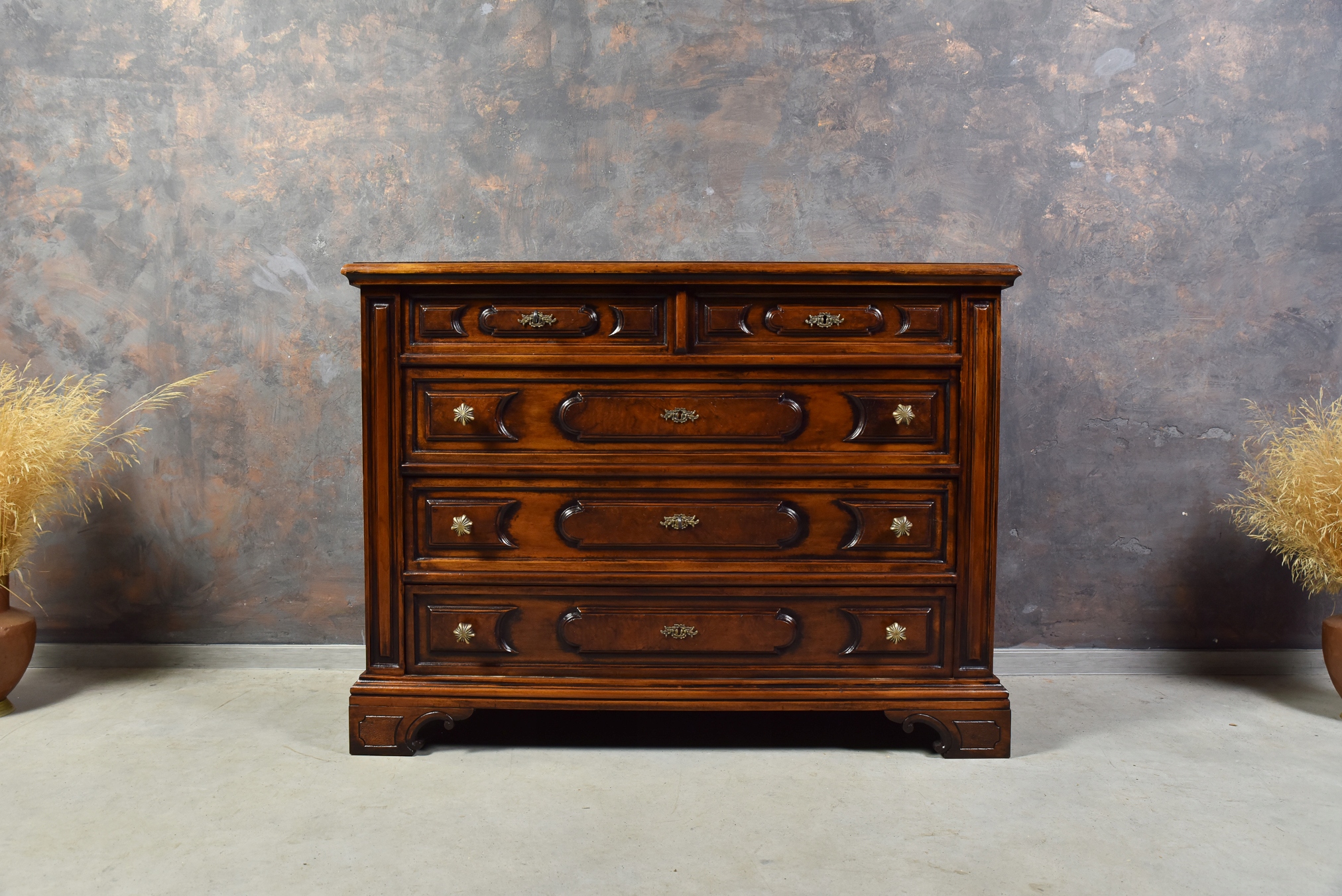Оригінальна латунна фурнітура та красива структура дерева надають їй унікального характеру .