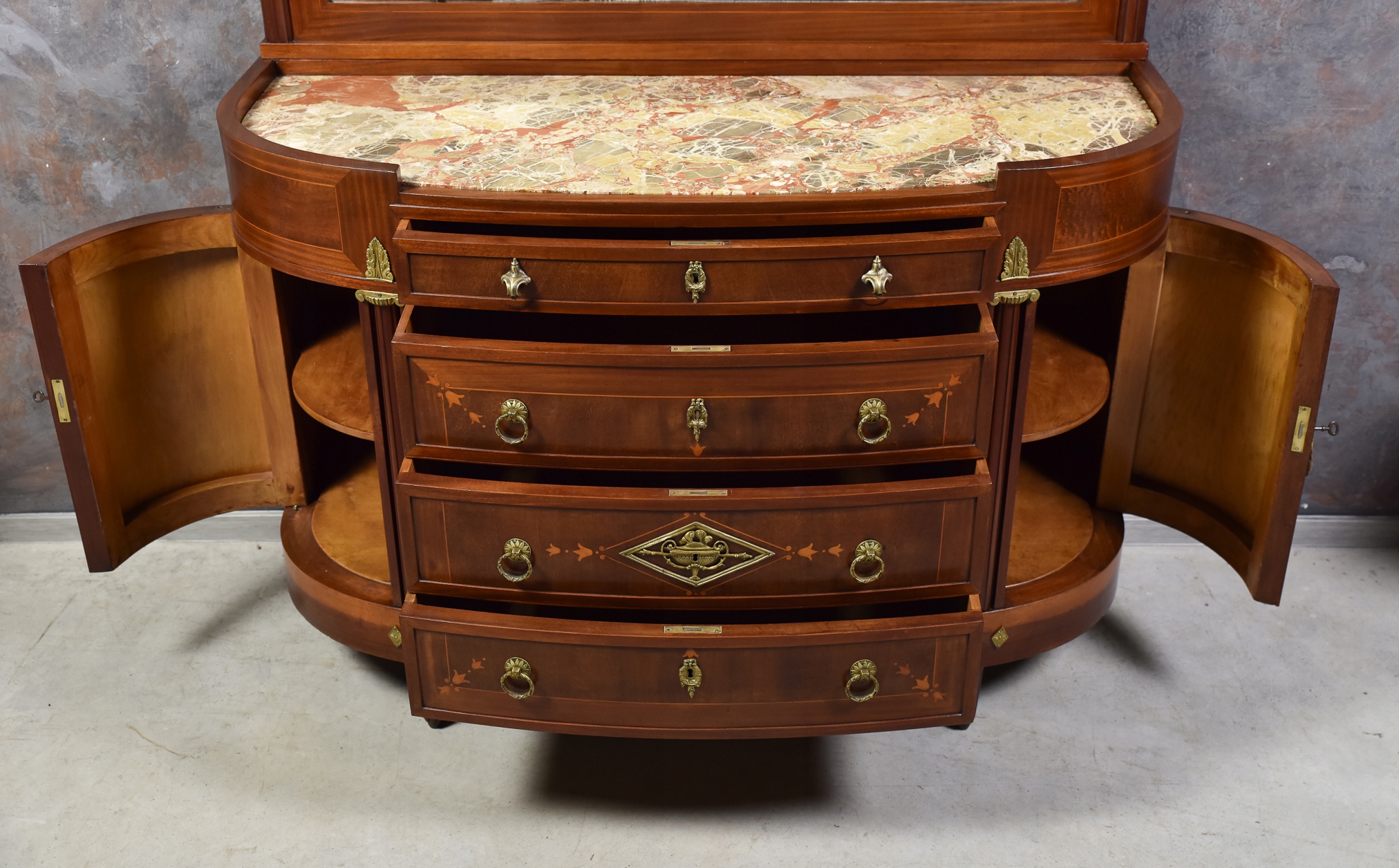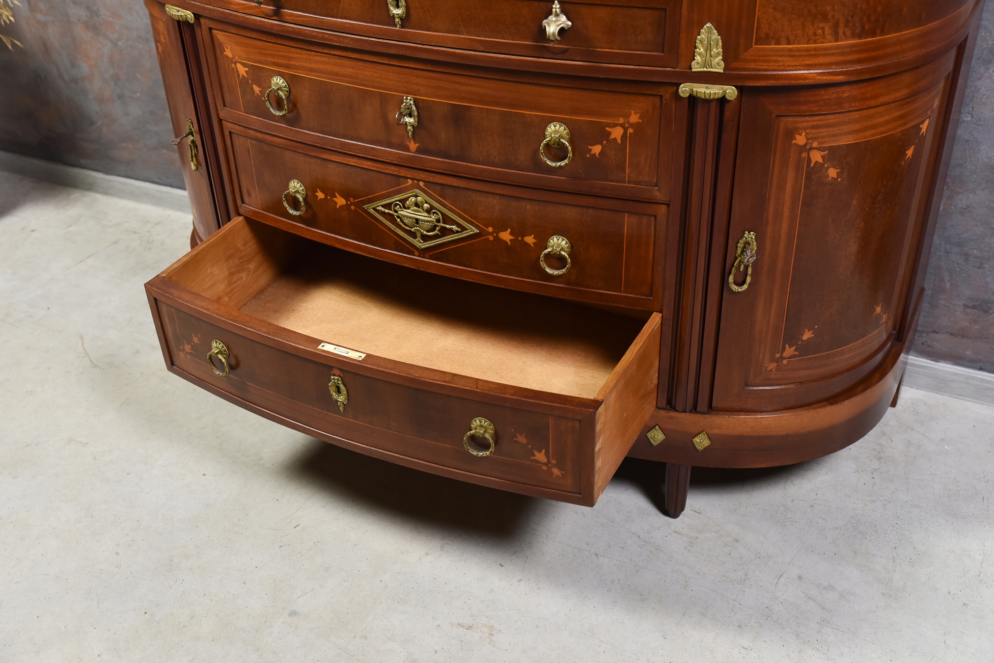 Цілком виготовлений із масиву горіхового дерева, гарно інкрустований, напівкруглі дверцята.