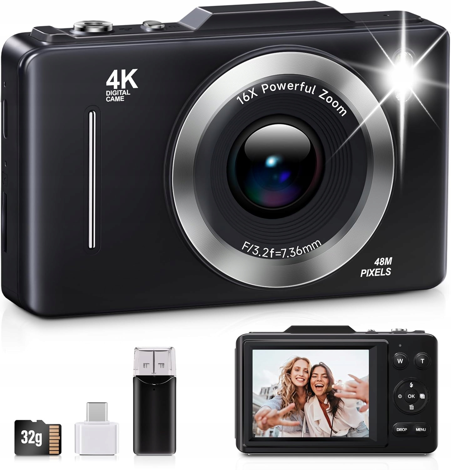 КОМПАКТНА ЦИФРОВА ФОТОКАМЕРА HD 4K РІЗДВЯНІ ПОДАРУНКИ + КАРТА ПАМ'ЯТІ 32G