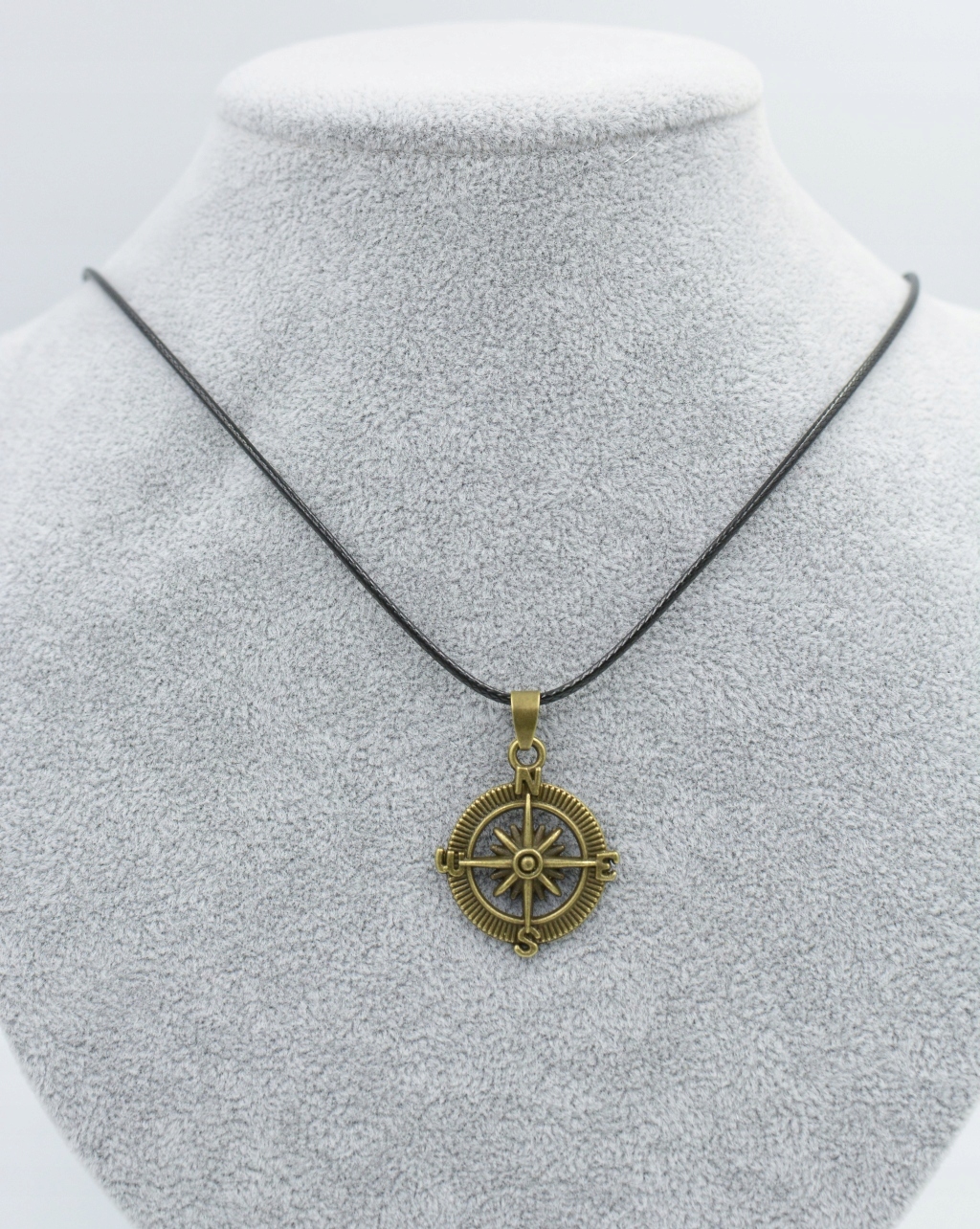 Підвіска з ТРОЯНДОЮ ВІТРІВ, КОМПАС, чорний ремінець