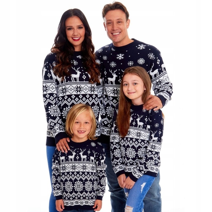 КОМПЛЕКТ 2+2 РІЗДВЯНІ СВЕТРИ ДЛЯ СІМ'Ї НОРВЕЖЬКИЙ СВЕТР З ОЛЕНЯМИ