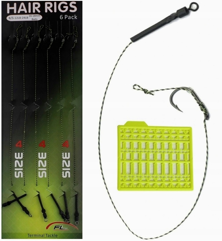 ⚡ Набір з 6 високоякісних коропових поводків для волоскового методу на бойли, пеллетс, грейн і т.д., виготовлені з плетеної волосіні діаметром 16-18 мм і ковані , дуже міцні, профільовані гачки, з'єднані за допомогою безвузлового вузла.
