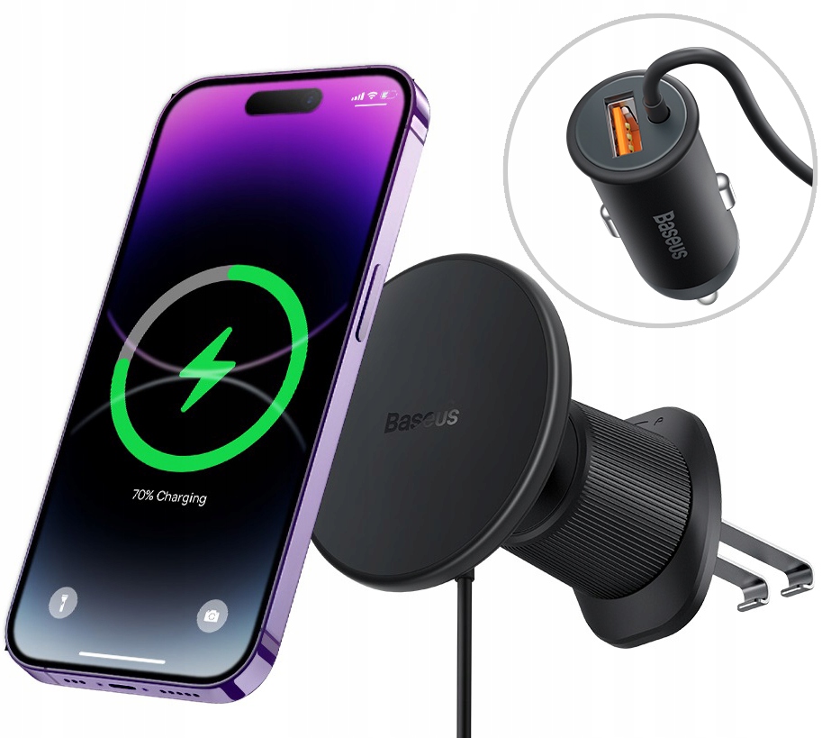 BASEUS SET MAGSAFE CAR HOLDER WIRELESS CHARGER + USB 25W