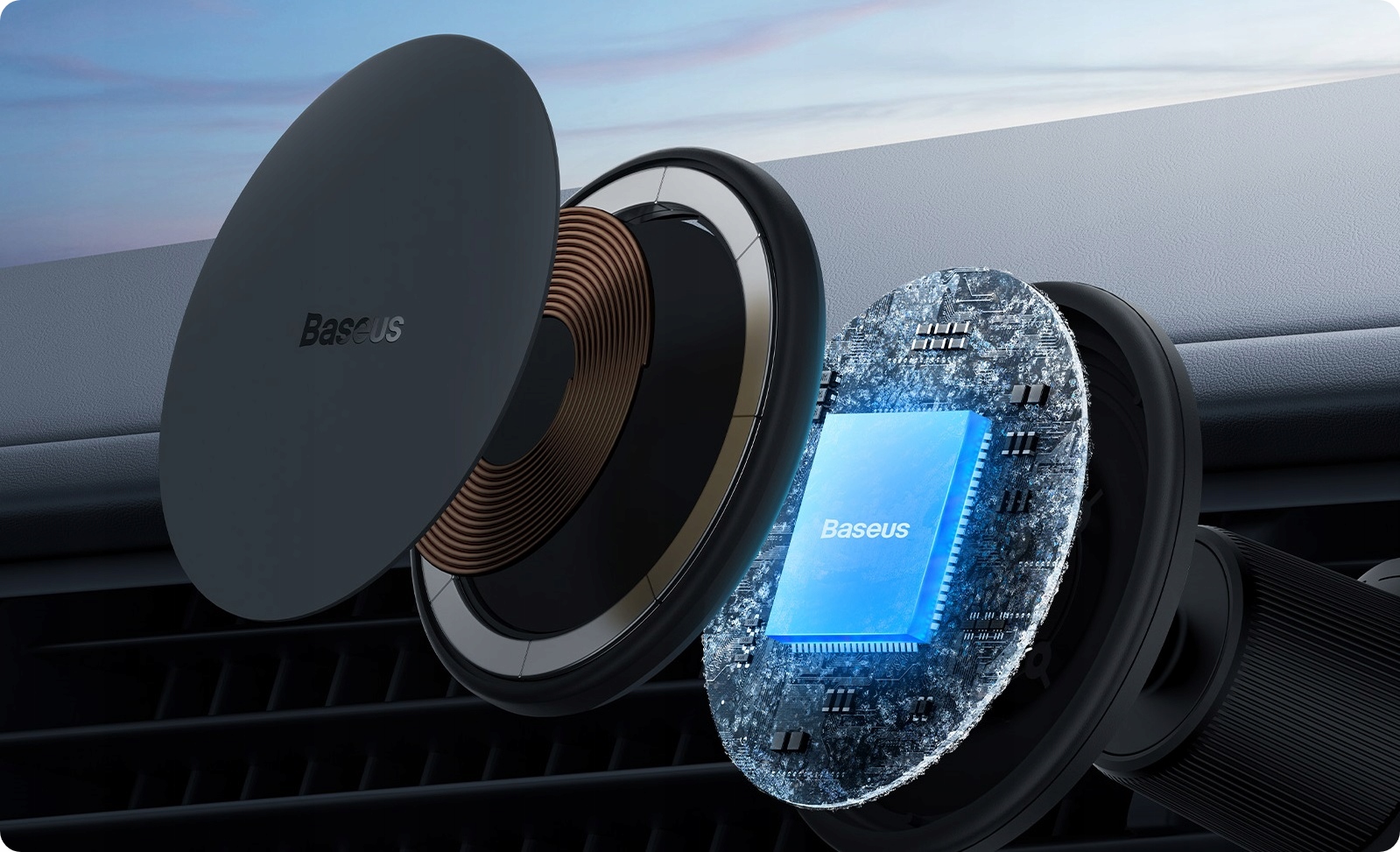 КОМПЛЕКТ BASEUS АВТОМОБІЛЬНИЙ ТРИМАЧ MAGSAFE БЕЗДРОТОВИЙ ЗАРЯДНИЙ ПРИСТРІЙ + USB 25W