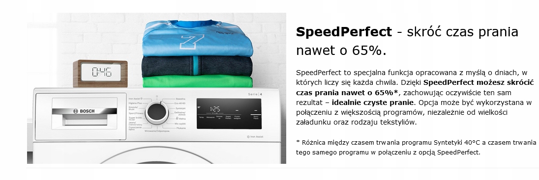 Завдяки найвищому класу енергоефективності пристрій буде споживати значно менше енергії, що забезпечить додаткову економію сімейного бюджету. Крім того, придбавши такий пристрій, ви краще подбаєте про природу. Пристрій має досить великий об'єм барабана, щоб легко задовольнити потреби великої родини. Барабан пральної машини розганяється до високої швидкості обертання, завдяки чому ефективно видаляє воду, прискорюючи процес сушіння одягу. Сильною стороною пристрою є автоматизація зважування. Ця функція оцінює розмір завантаження та відповідно регулює тривалість циклу прання. Це означає, що пристрій використовує стільки води та енергії, скільки необхідно для отримання ідеальних результатів прання.
