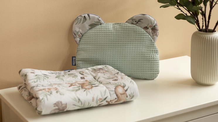 ⭐️ Комплект коляски Waffle складається з подушки (36х28 см) і ковдри (56х76 см). Завдяки компактним розмірам ідеально підходить для коляски, ліжечка або як м'який килимок. Антиалергічний наповнювач гарантує відмінну ізоляцію від холоду, а подушка може служити м'якою іграшкою. Виготовлений зі 100% бавовни, має двосторонній дизайн: з одного боку візерунок, з іншого — бавовна з вафельною структурою. ⭐️