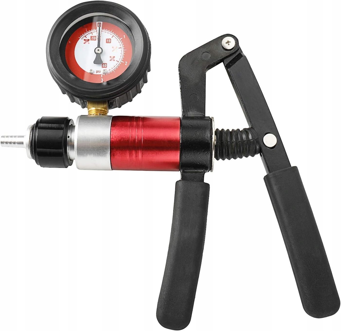 - вакуумний насос: Ручний насос, що виробляє вакуум у гальмівних лініях, дозволяє швидко та ефективно видалити забруднену рідину. 2 в 1: вимірювач тиску, оснащений функцією вимірювання та відображення вакуумного тиску. Діапазон тиску становить до 40 фунтів на дюйм, а вакууми до 26 к.с., що дозволяє працювати в накачуванні повітря та всмоктування. Він також може бути використаний для очищення гідравлічних систем та випробувань вакууму.