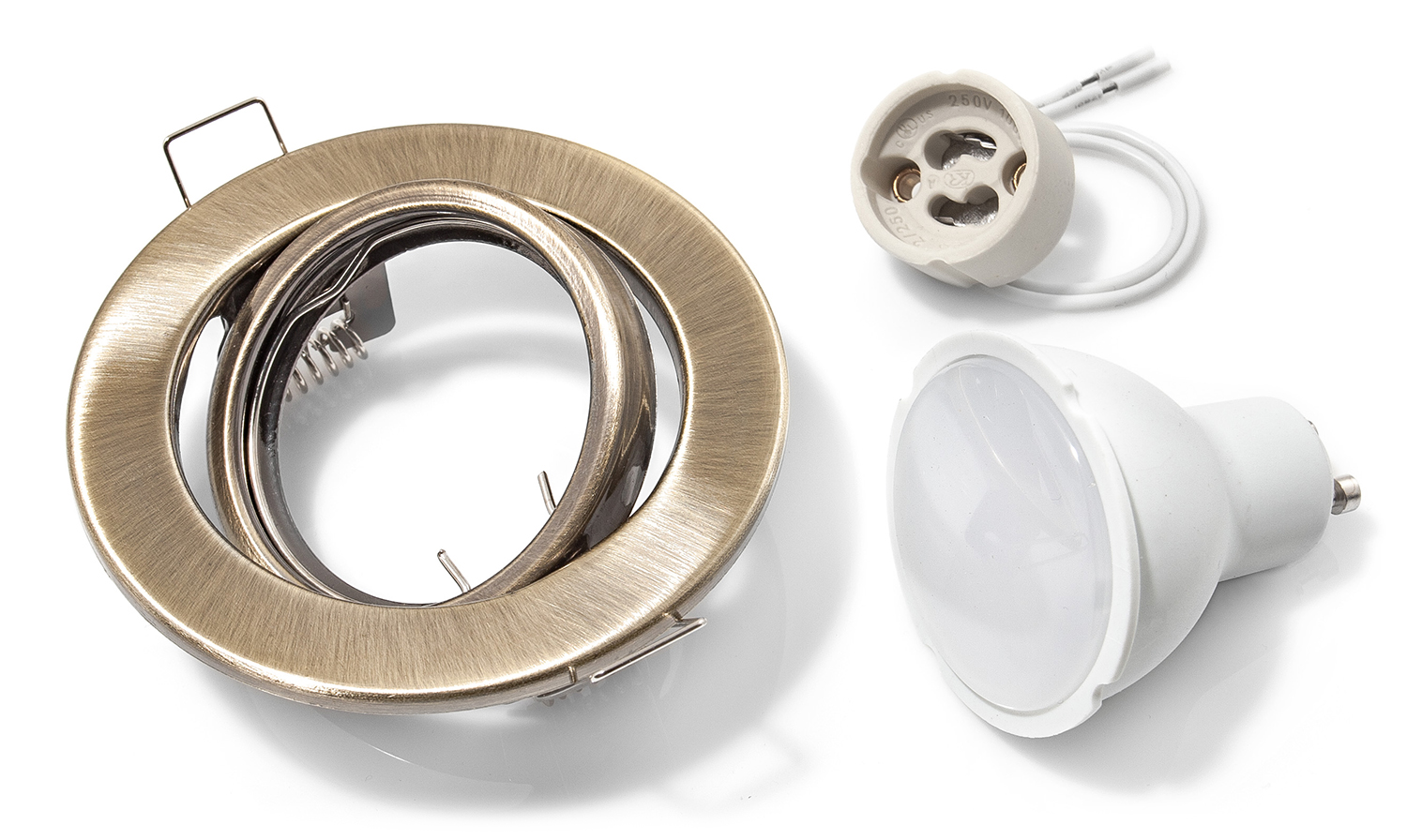 КОМПЛЕКТ ГАЛОГЕННИХ СВІТИЛЬНИКІВ, РУХОМИЙ ЕКРАН, ЛАТУНЬ + СВІТЛОДІОДНА ЛАМПА 10 Вт GU10 + GU10 Цоколь