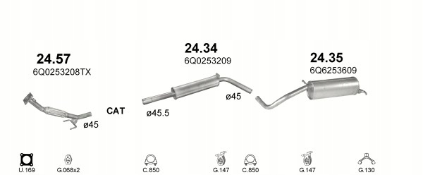 Комплект глушника Seat Ibiza, місткість 1.4 01-09.