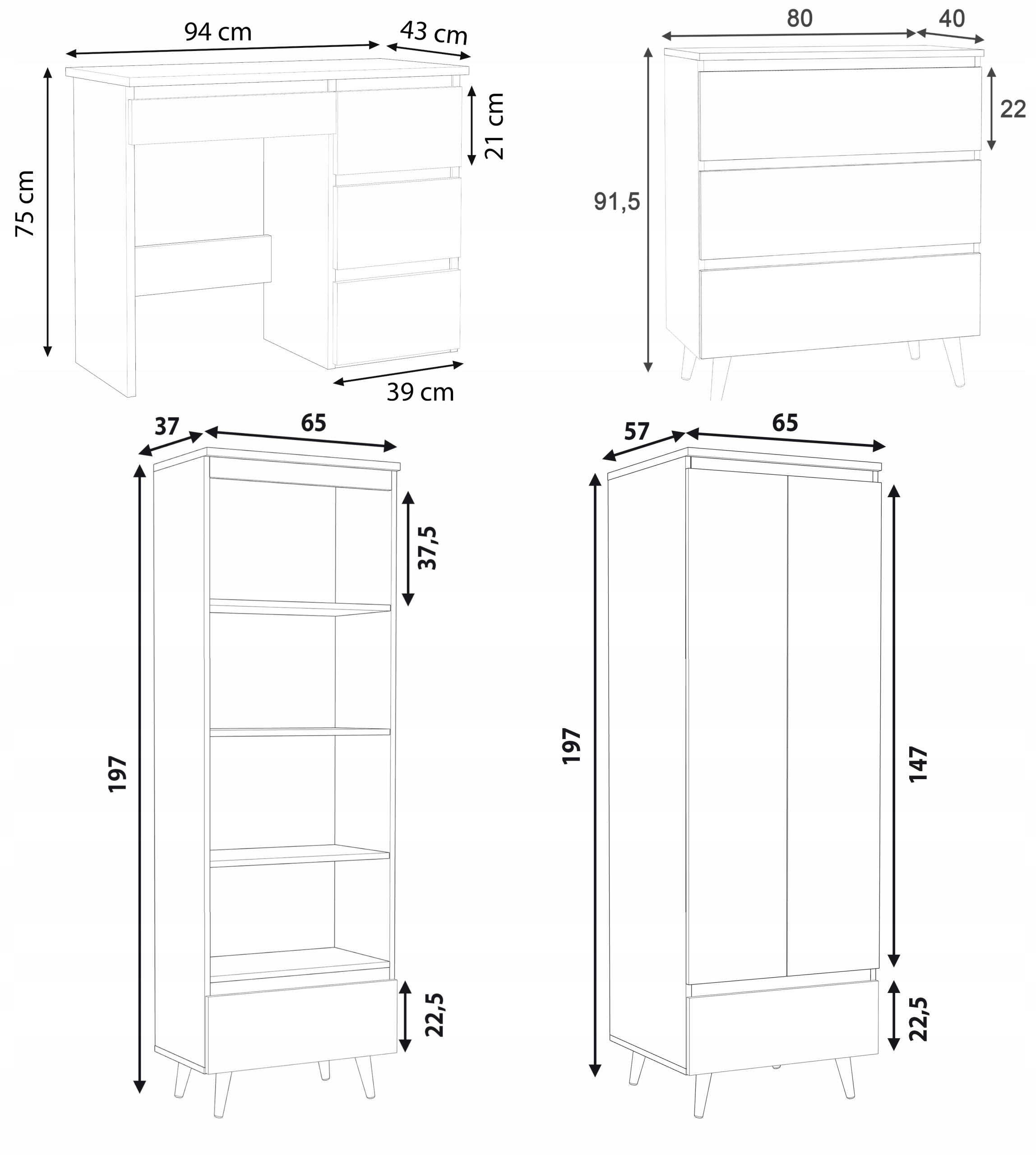 Комплект меблів NORGE 1 молодіжний з письмовим столом - скандинавський стиль, 4 шт
