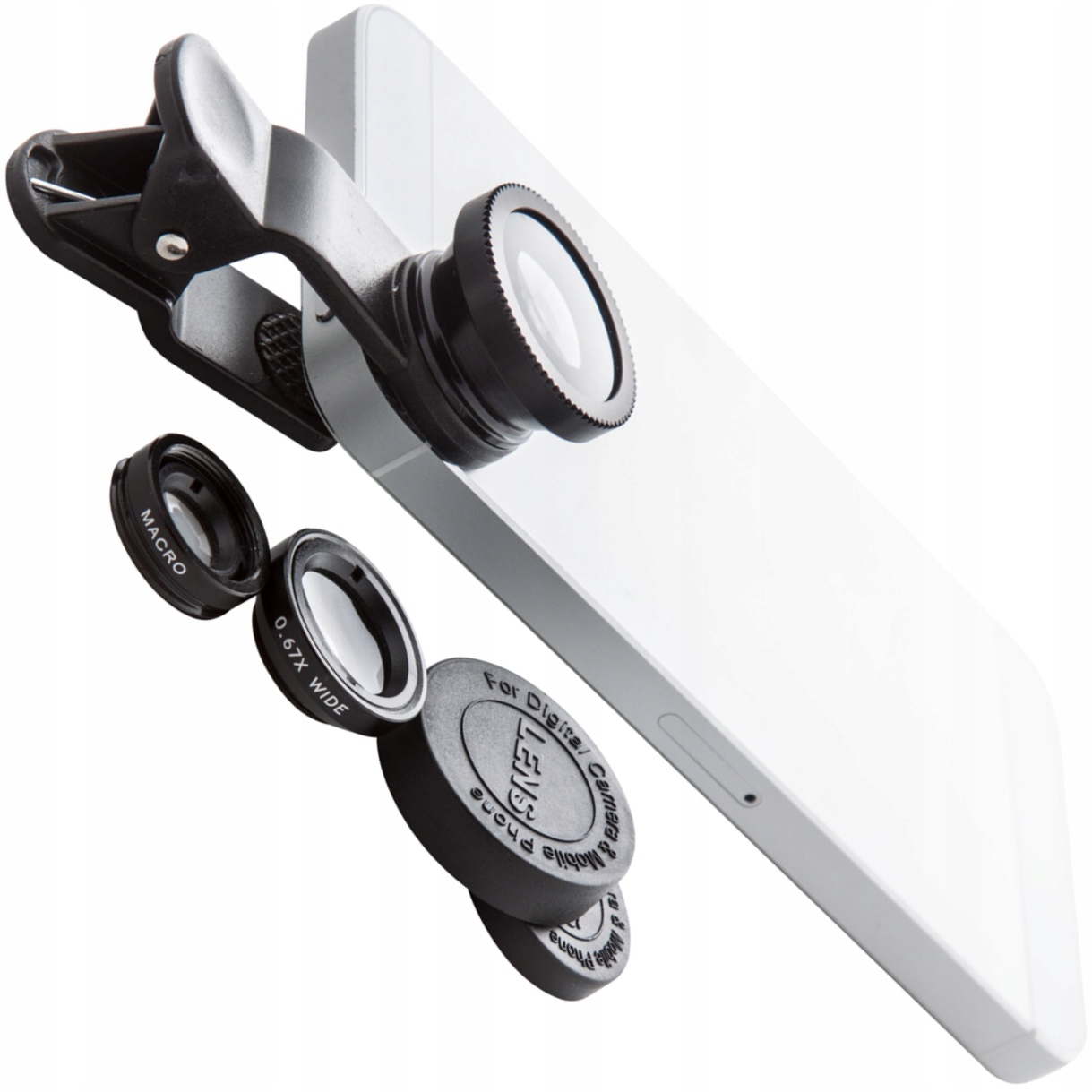 Набір лінз для смартфонів із універсальний затискач у футлярі.