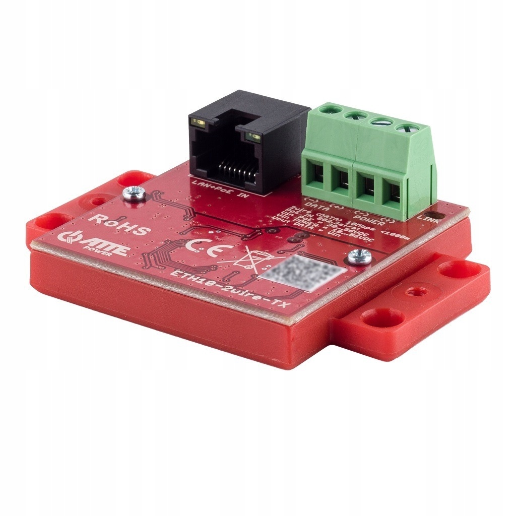 Модуль ETH10-2wire-TX живиться від будь-якого комутатора PoE (порт RJ45), а потім через 2 дроти, що забезпечує двосторонній мережевий зв’язок і живлення модуля ETH10-2wire-RX за допомогою камери PoE. Пристрої опціонально можуть отримувати живлення від гвинтових роз'ємів POWER. Максимальна довжина кабелів у двопровідній трасі становить 1000 м.