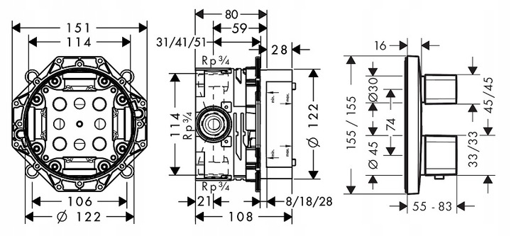 КОМПЛЕКТ ПРИХОВАНОГО КРАНА HANSGROHE ТЕРМОСТАТ 30