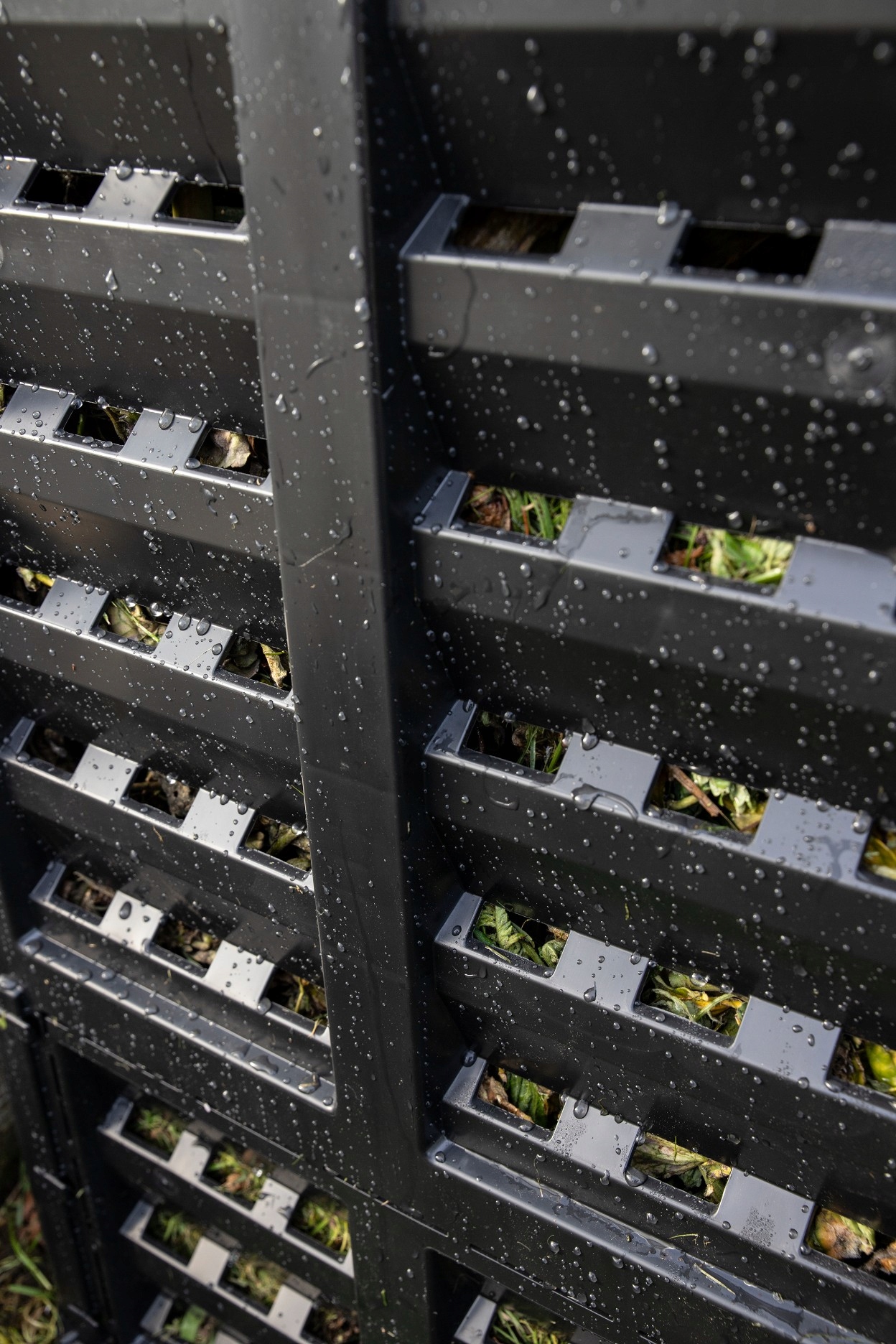 ❇️Спеціально розроблена система отворів у бічних стінках забезпечує достатню циркуляцію повітря (спеціальна система вентиляції) та обмежене проникнення сонячного світла, вітру та води (немає ризику висихання компосту).