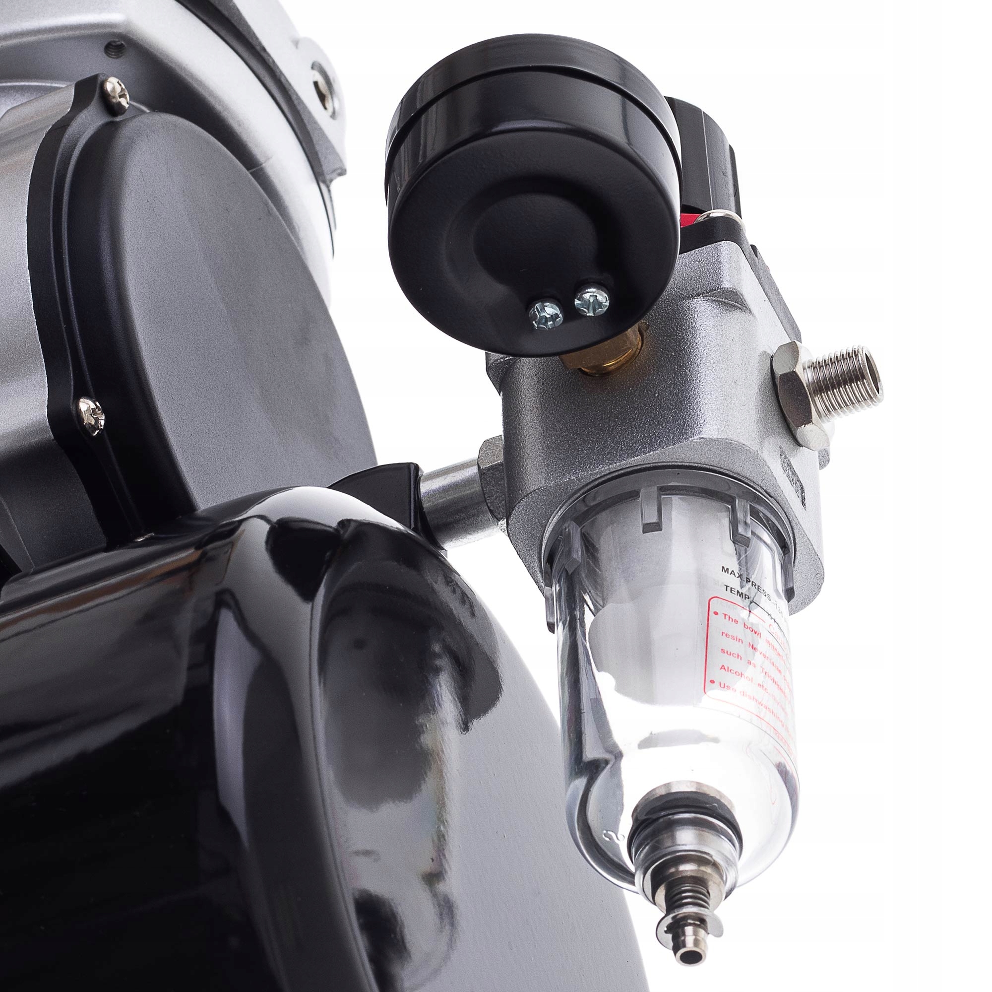 Професійний поршневий поршневий компресор для всіх типів аерографів, термо-кончера та циліндра, що стабілізує пульсацію на виході повітря. Використовується в салонах краси, татуювання найчастіше в моделюванні та з незначними картинами.
