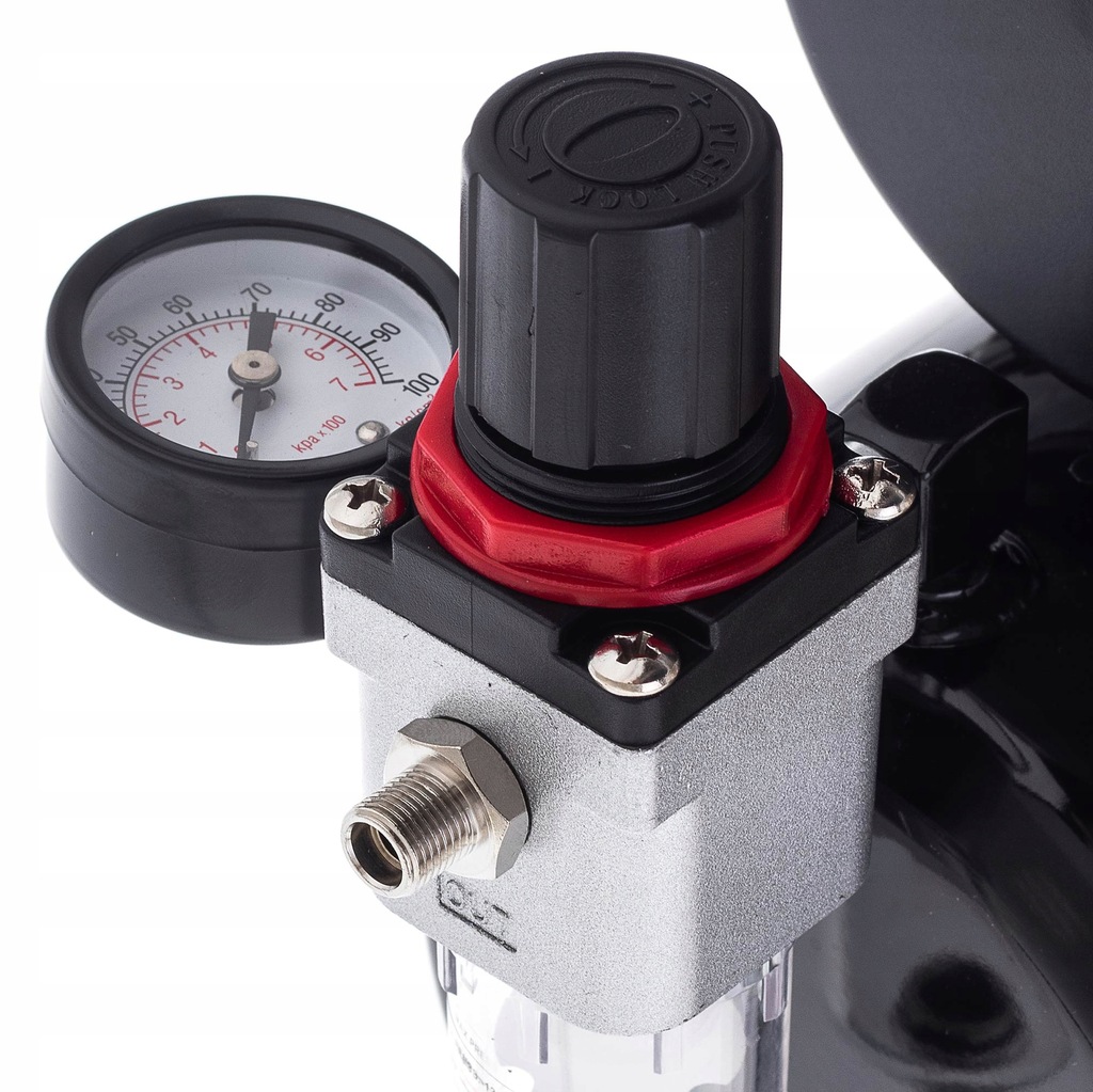 Керування та безпека - Набір підготовки повітря, інтегрованого з компресором, дає можливість повного контролю тиску та сухого повітря. Додатковий циліндр закріплений запобіжним клапаном (червоним кольором)