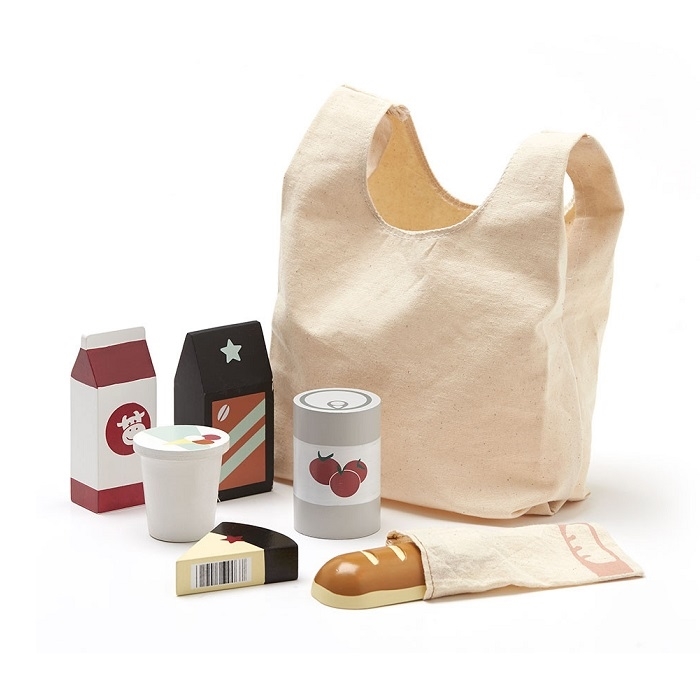 Продуктовий набір — чудова ідея для дітей, які люблять щодня робити покупки з батьками. Це, безсумнівно, подарує вашій дитині багато годин розваг, розвиваючи моторику, уяву та надихаючи творчі ігри. У набір входить: кава, сир, пакет молока, контейнер морозива, консервовані помідори, свіжий рулет у бавовняному пакеті та пакет для покупок зі 100% бавовни з двома ручками. Робіть покупки, платіть, пакуйте та повертайтеся додому, готуючи смачну їжу з куплених продуктів. Все це ретельно оброблено та безпечно для використання. Набір стане ідеальним доповненням до ігор магазину разом з касовим апаратом і візком з колекції Kids Concept. Грати в будинок і магазин не буде кінця :)