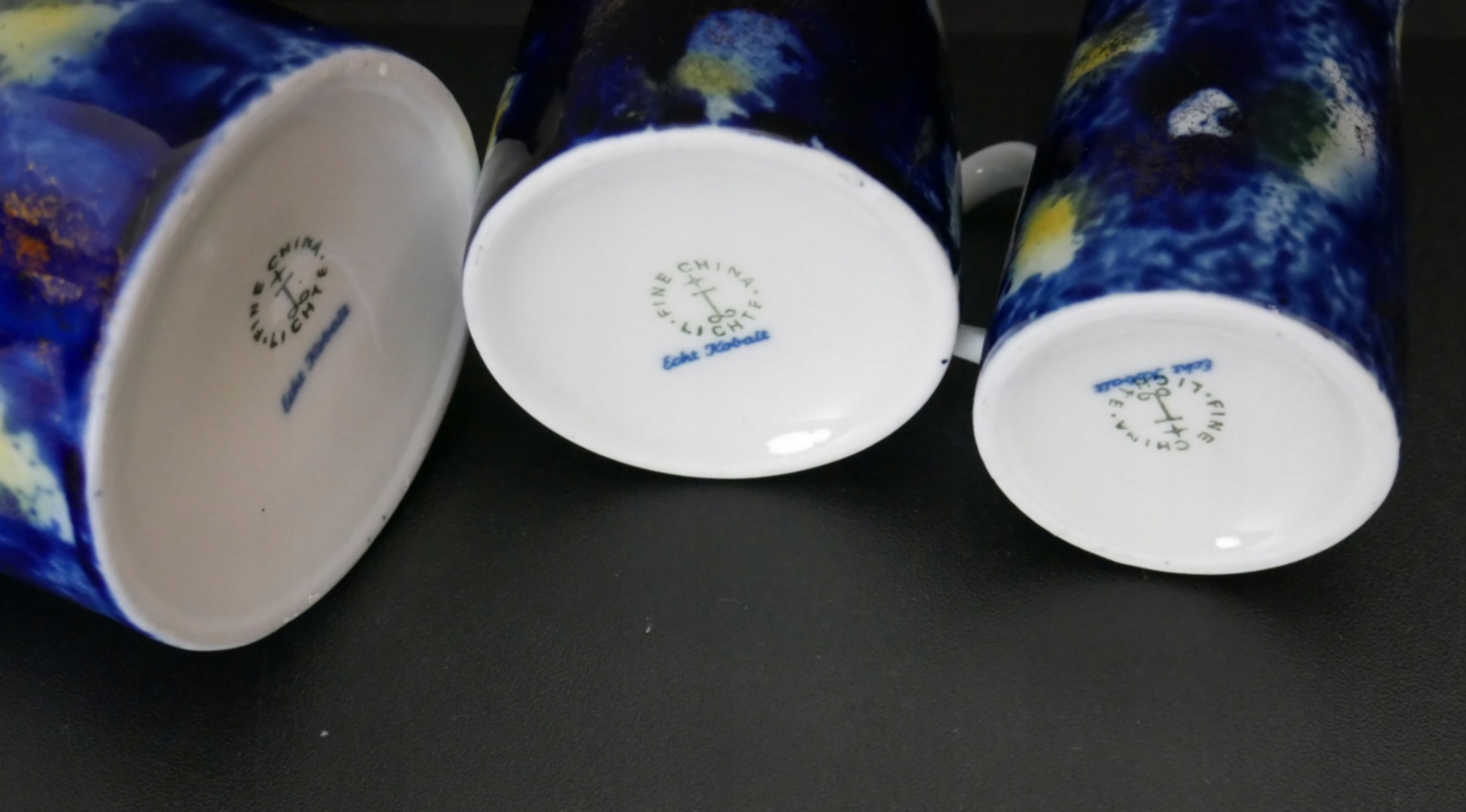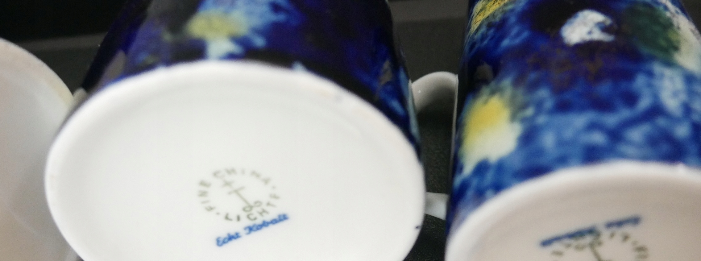 Школи та молоко-леттін, Echt Kobalt + Free Able, який має осколку на ручці-порцелян