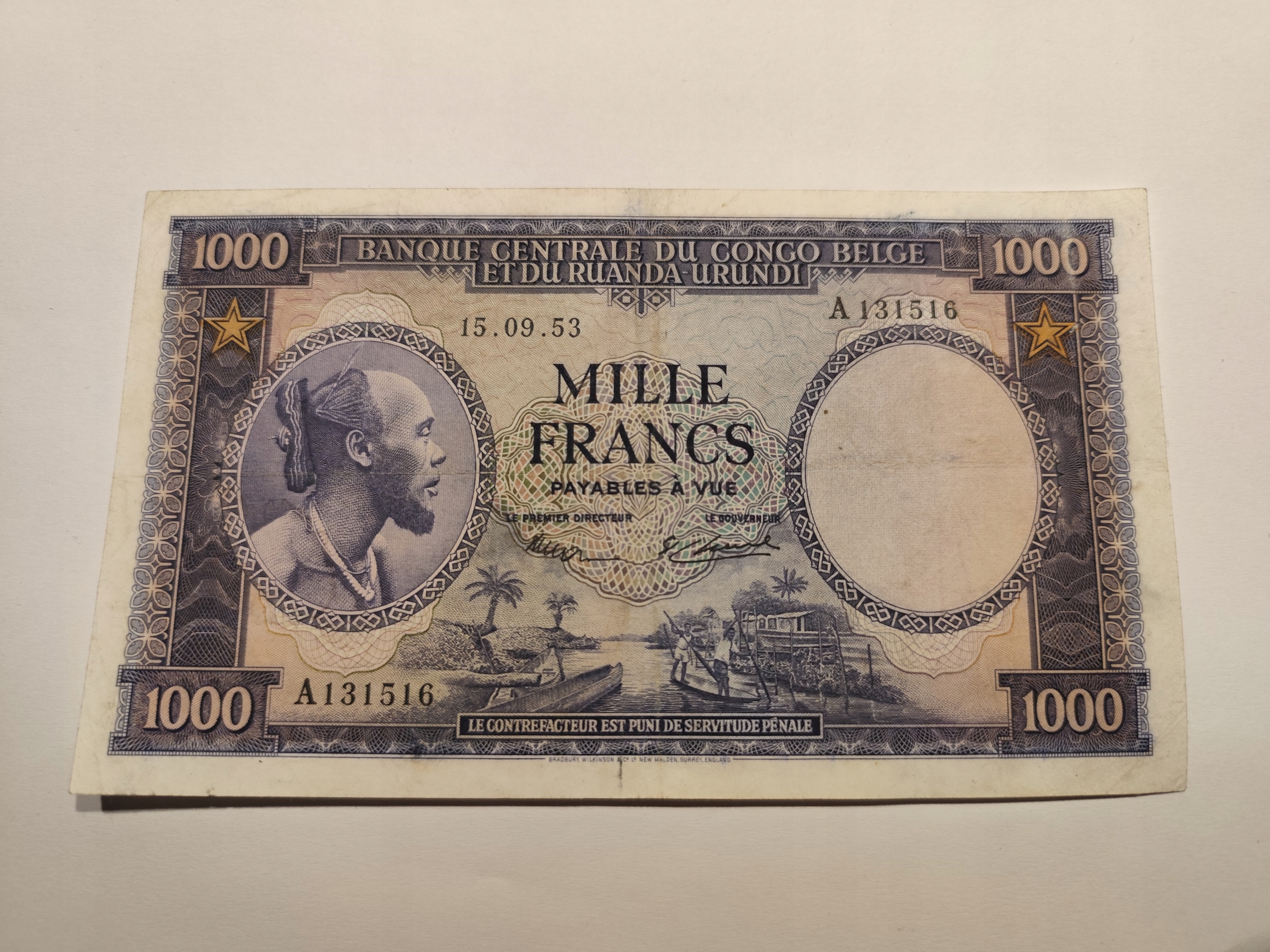 Kongo Belgijskie - 1000 franków - 1953 - hiper rzadki